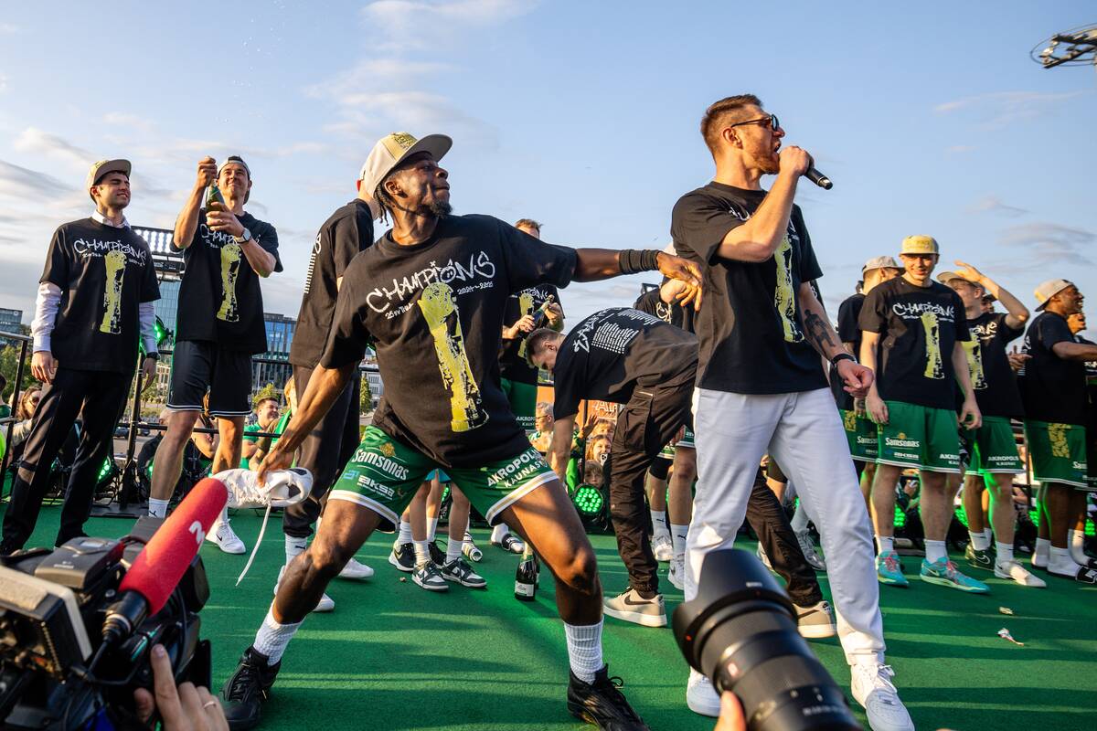 „Žalgirio“ komandos susitikimas su sirgaliais laimėjus LKL finalą.