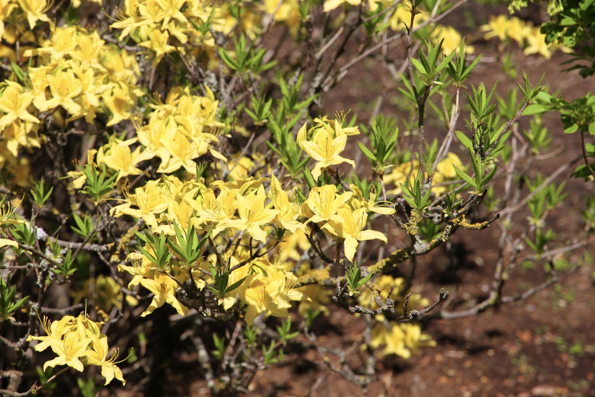 Tarp naujokų – iš 2015 m. sėklų išaugintas nuostabusis rododendras (Rh. insigne), kol kas labiausiai stebinantis savo mažumu. Taip pat pernai pasodinta veislė 'Germania' ir pirmą kartą šiemet žydėsianti 2020 m. įsigyta lenkiška veislė 'Kazimier Wielky'.