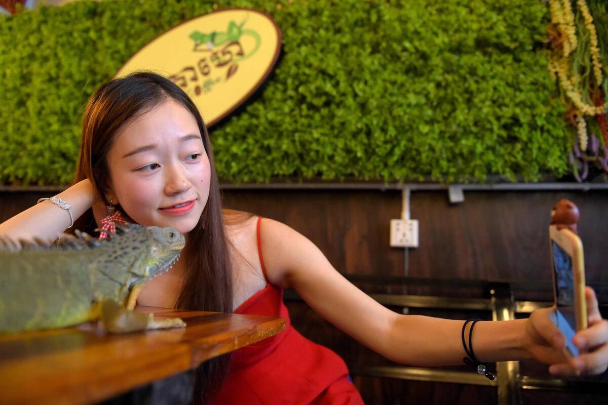 Klientai, siurbčiodami kavą su pienu roplių kompanijoje „juos pamils taip, kaip myliu aš“, naujienų agentūrai AFP sakė 32 metų verslininkas, glostydamas žvynuotą iguanos kaklą.
