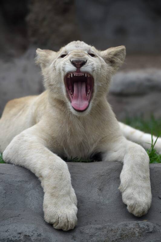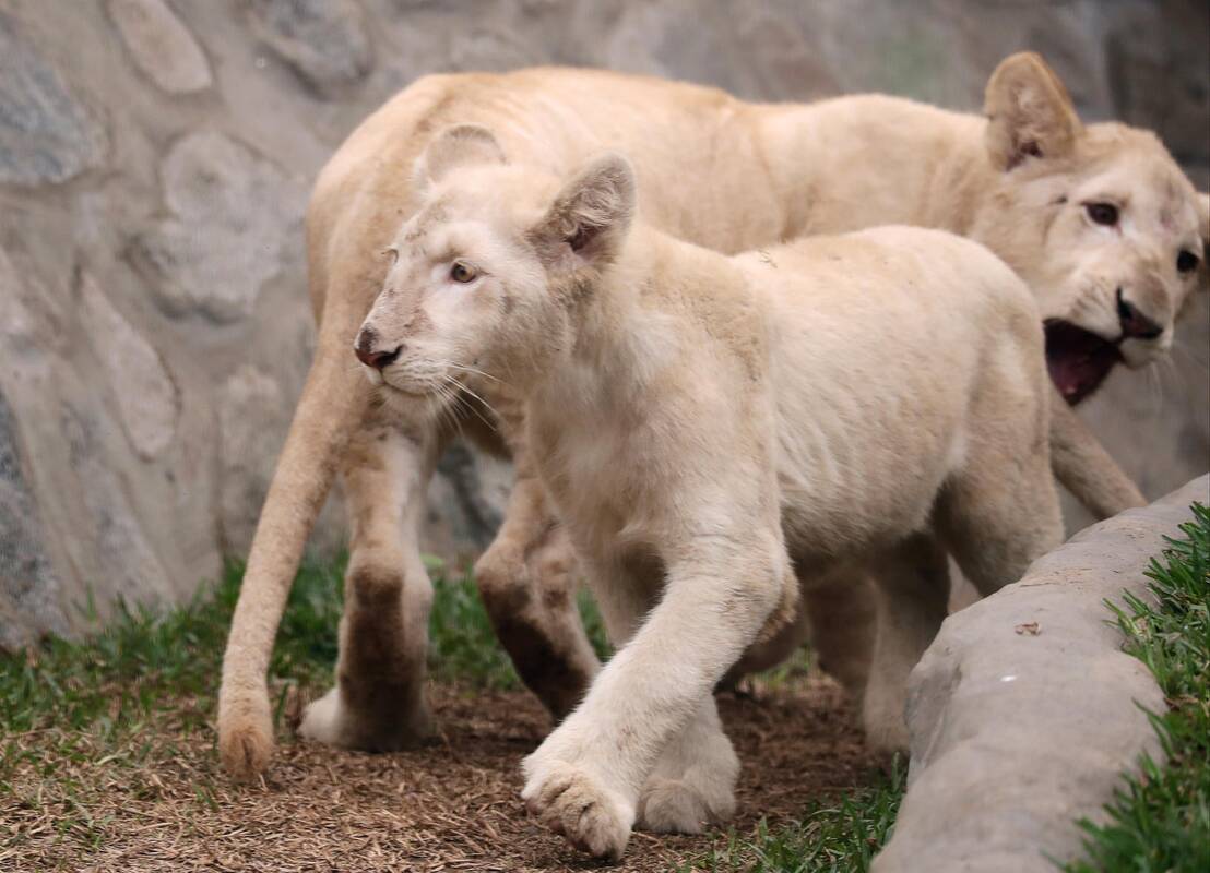 Baltųjų liūtų jaunikliai jau sveria po maždaug 50 kg ir kasdien suėda po penkis kilogramus jautienos ir vištienos, pasakojo jų prižiūrėtojas Amadeo Hermosa (Amadėjas Hermosa).