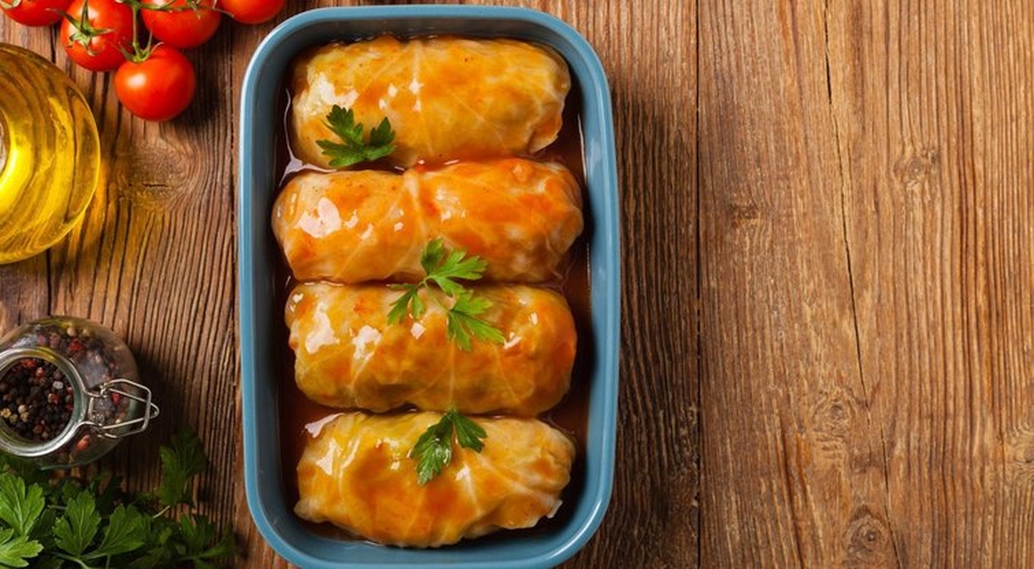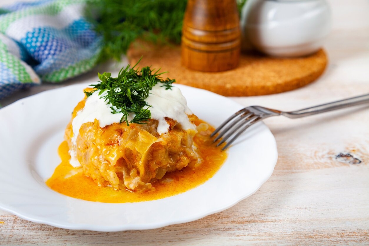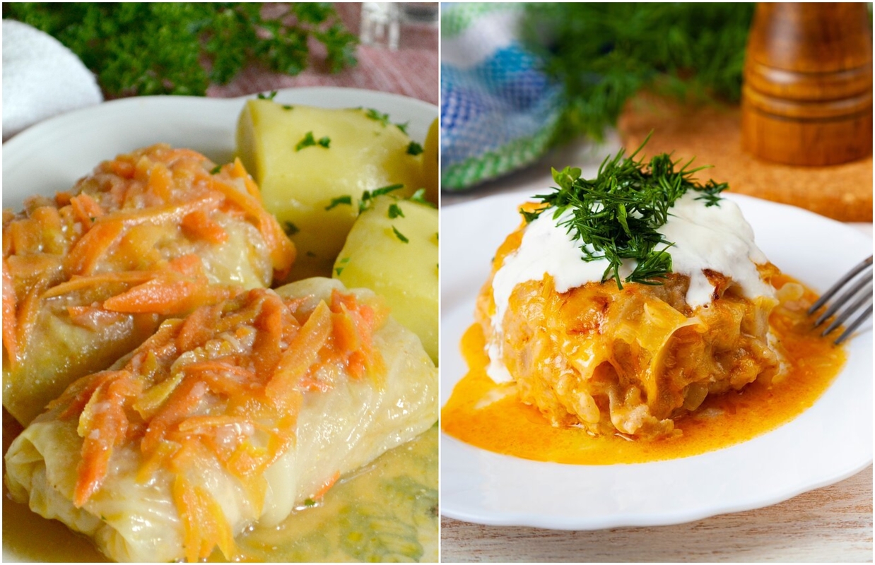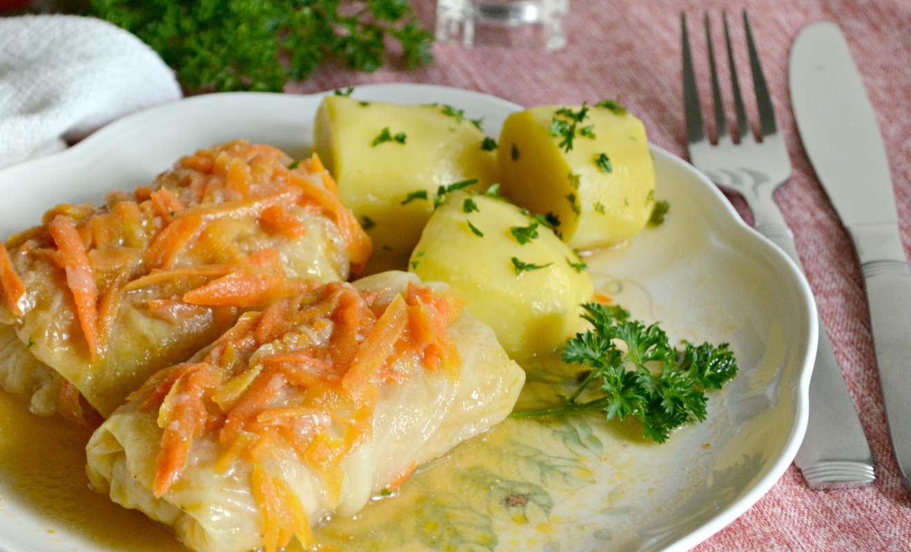 Kopūstą apvirkite vandenyje, kol suminkštės. Atsargiai nuimkite lapus, lapkočius, jei stori, išpjaukite arba padaužykite. Įdarui: svieste pakepkite smulkintus svogūnus ir per burokinę tarką smulkintą morką, kol suminkštės. Išvirkite ryžius. Viską sumaišykite su kiaulienos ir jautienos faršu. Pagal skonį įdėkite druskos, pipirų. Ant kiekvieno kopūstlapio dėkite įdaro, kraštus užlenkite ir suvyniokite. Suvyniotus balandėlius apkepinkite svieste ir dėkite į puodą. Atskirame inde sultinį arba verdantį vandenį sumaišykite su pomidorų tyre, pasūdykite ir užpilkite ant balandėlių. Troškinkite apie valandą ant mažos ugnies. Pabaigoje įdėkite grietinės.