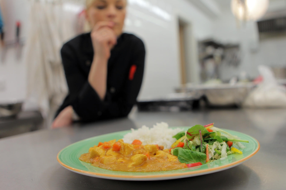 Įdedame druskos, pipirų pagal skonį ir vandenyje ištirpinto krakmolo – parengtas karis įgauna stangrumo. Patiekalą pateikiame su ryžiais arba keptomis bulvėmis.