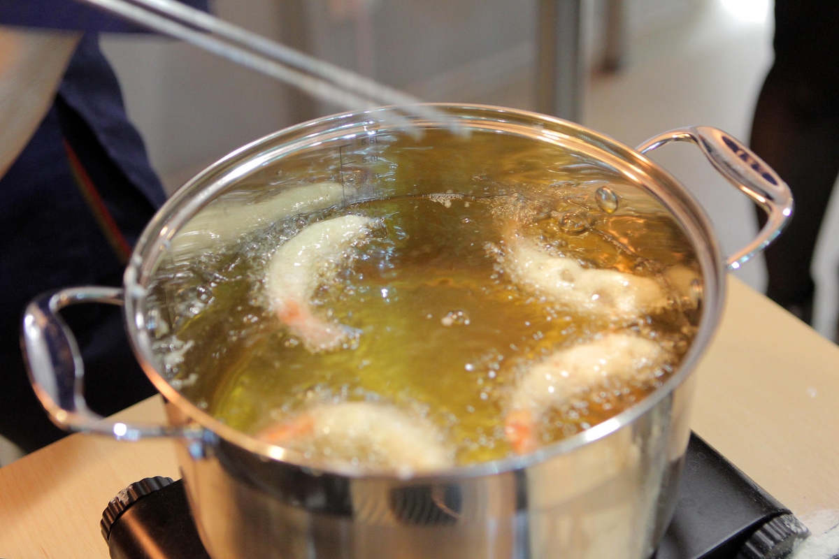 Sviestą ištirpiname keptuvėje, supilame kario miltelius, sumažinę liepsną kaitiname 4-5 minutes. Maišome, kad jie nesudegtų.