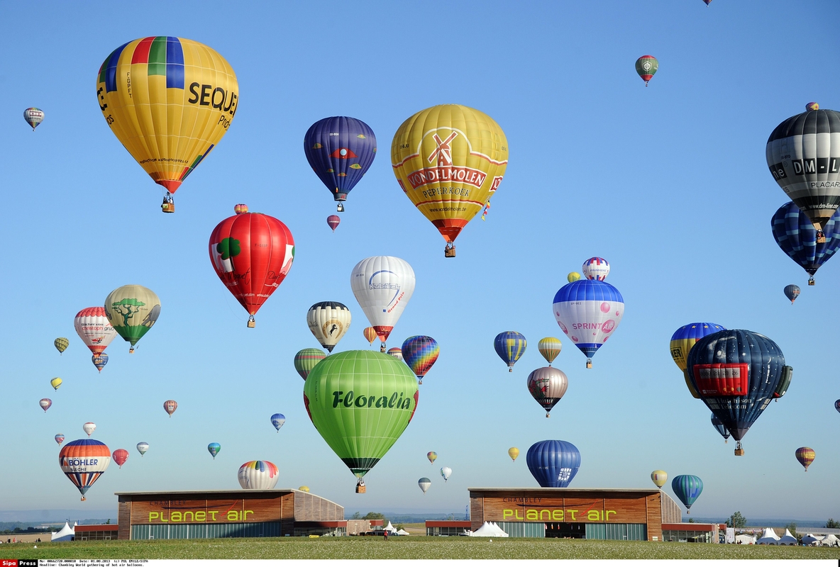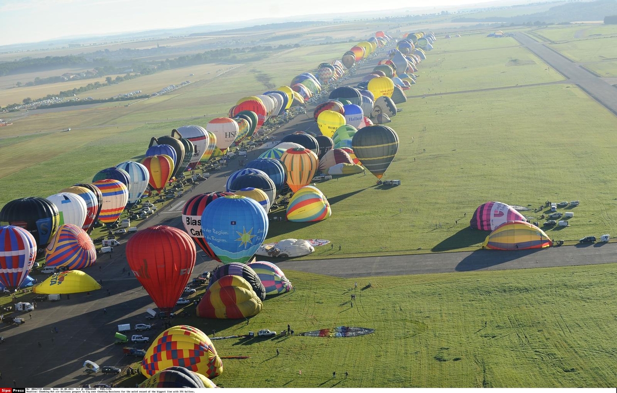 Daugybė oreivystės entuziastų, susirinkusių šiaurės rytų Prancūzijoje, pasiekė du pasaulio rekordus, kai į dangų pakilo 408 spalvingi karšto oro balionai, o prieš vieną masinį startą jų buvo išrikiuota net 391.