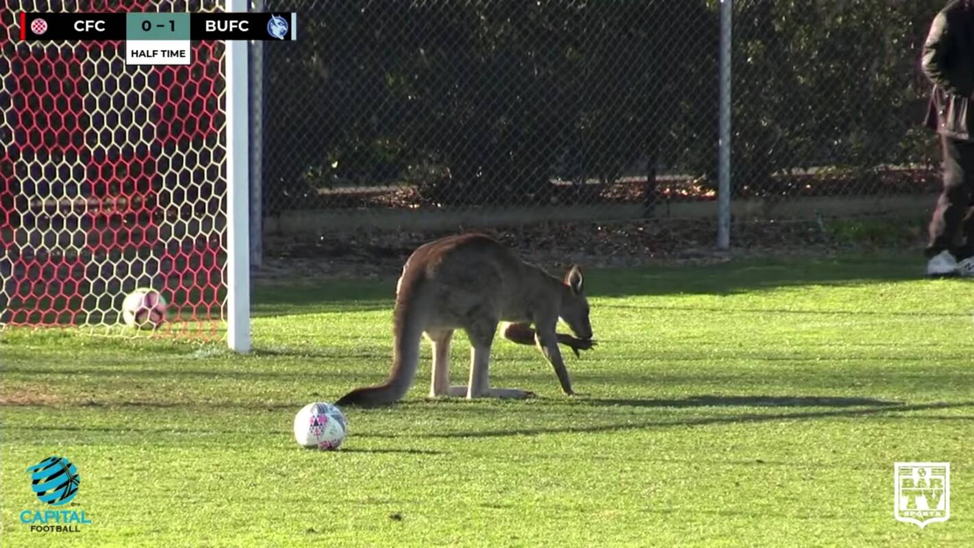 Žaidėjai ir darbuotojai mėgino išvyti nelauktą įsibrovėlę, spardydami į ją kamuolius. Vaizdo įraše matyti, kad kengūra savo ilgomis užpakalinėmis kojomis atmušinėjo kamuolius baudos aikštelėje.