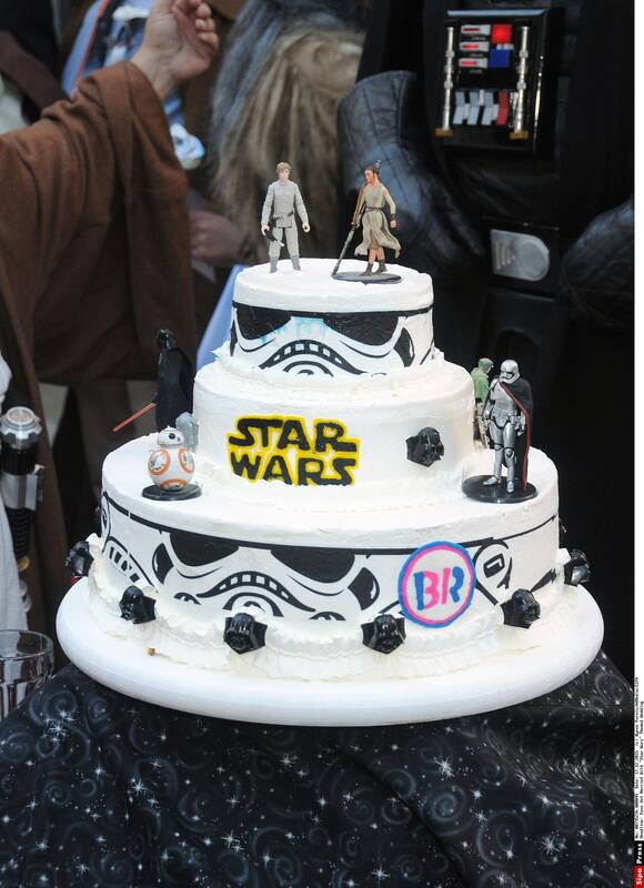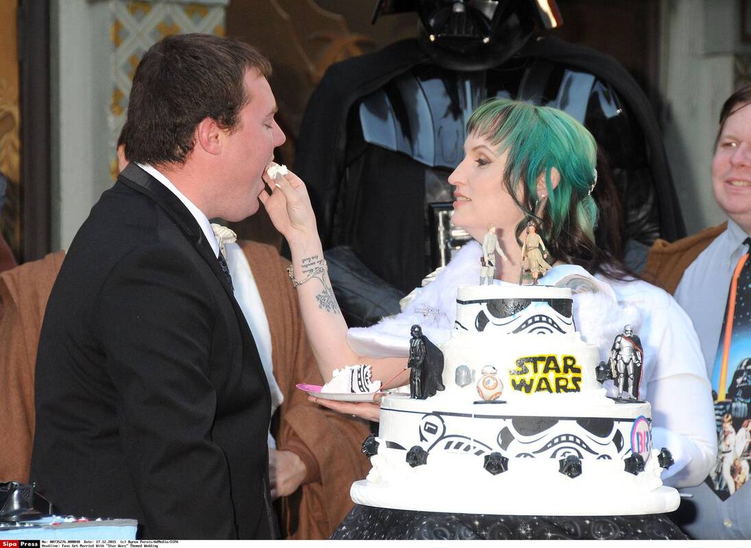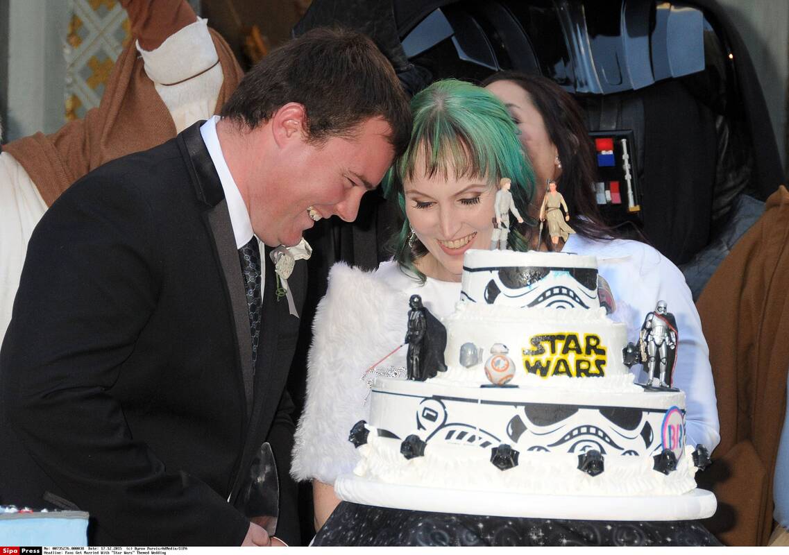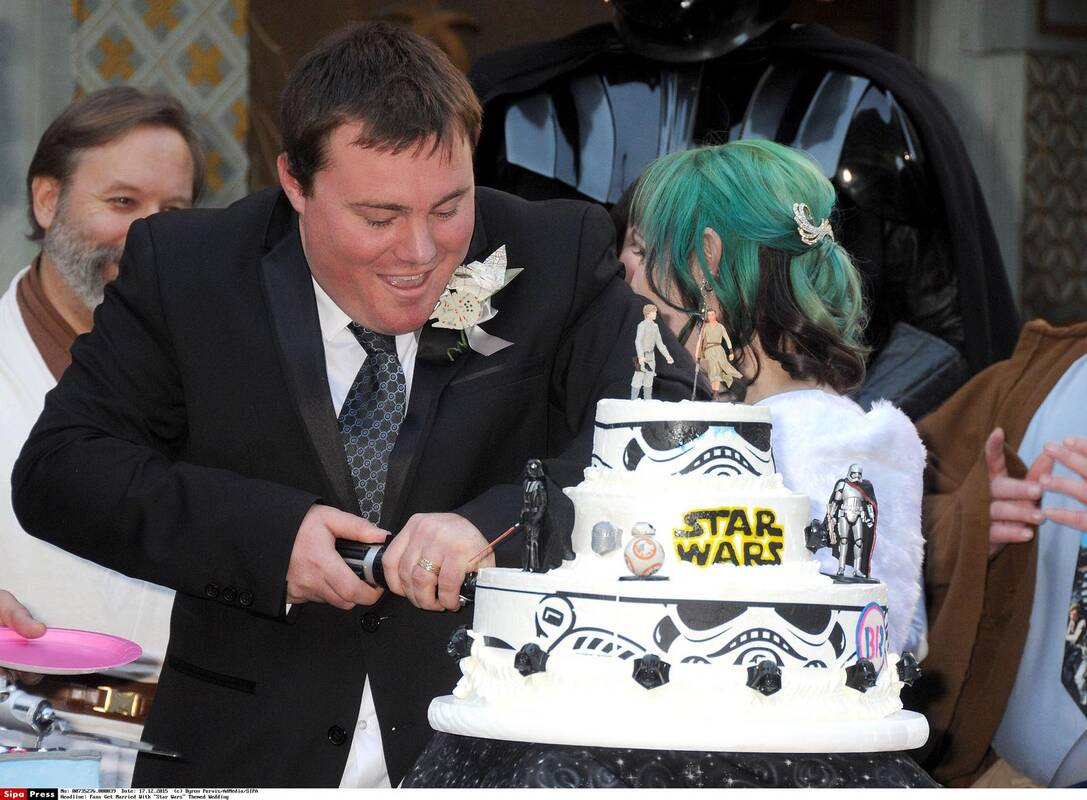Poros vestuvių tortas taip pat buvo ypatingas – baltas bei su "Žvaigždžių karų" logotipu.