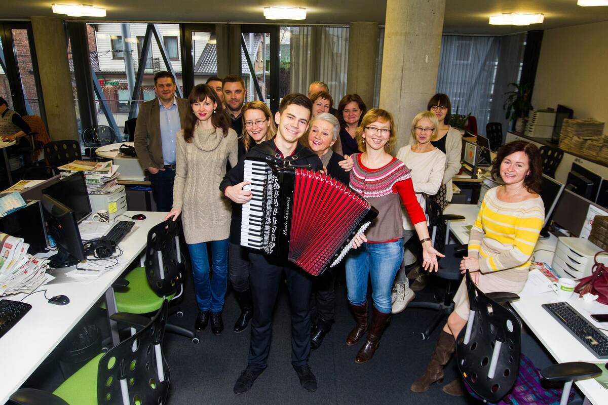 "Kauno dienos" redakciją šv.Kalėdos aplankė anksčiau. Lietingą ir niūrią dieną nušvietė devyniolikmetis muzikantas Vytenis Danielius. Virtuoziškai itališką akordeoną "Paolo Soprani" valdantis daugelio tarptautinių konkursų laimėtojas dovanojo keliolika minučių užburiančios muzikos.