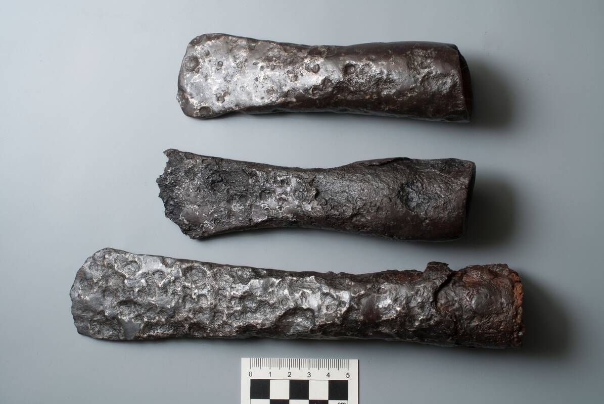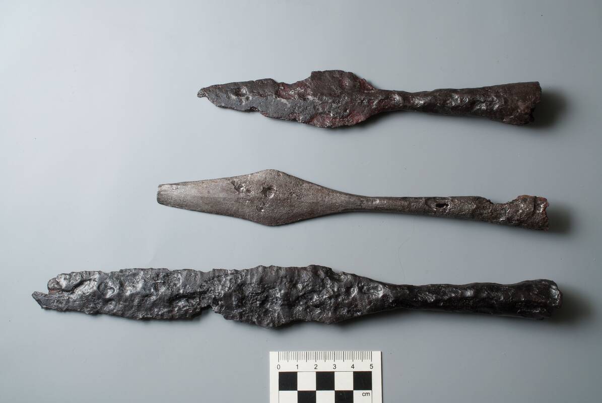 Geležiniai kirviai, ietigaliai, iš geležies ir vario lydinių pagaminti papuošalai, tarp jų – apyrankės, segės ir smeigtukai. Visi šie dirbiniai archeologinių tyrimų metu buvo rasti kaip įkapės – kartu su mirusiuoju laidoti daiktai. Visi jie gali atspindėti tiek mirusiojo identitetą ir statusą, tiek visuomenės socialinę struktūrą ir religines pažiūras.