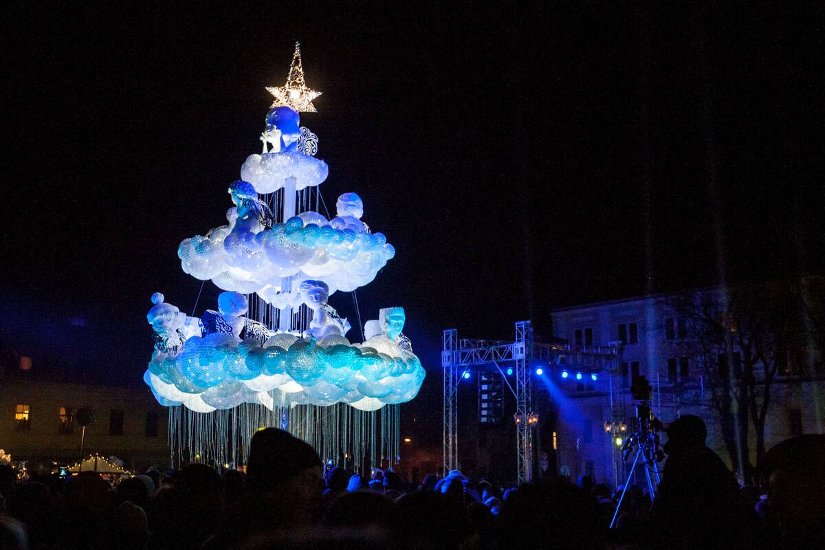 Šeštadienio vakarą visi keliai vedė į Rotušės aikštę, kur vyko šventė "Debesų taku". Tūkstantinės minios akivaizdoje įžiebta naujoji Kauno eglė.