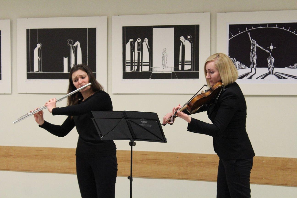 Šias jautriai išsakytas parodos pristatymo mintis pajuto ir lankytojai. Daugelis teigė, kad grafiko darbų cikluose lig šiol vyravęs šmaikštumas, ironija, aštri kritika tarsi pasitraukė į šalį. Visus nustebino parodos santūrumas. Jokių spalvinių žaidimų. Gėrio ir blogio, šviesos ir tamsos dvikova prikaustė lankytojų dėmesį, kaitino kraują. Siekdami parodos įtaigumo, organizatoriai sukūrė žavų sakralinės muzikos foną. Šviesios Antonio Vivaldi, Johanno Sebastiano Bacho, Camille Sen-Sanso, Franzo Schuberto melodijos pakiliai lydėjo ir kvietė į naują Rožinio slėpinių pažinimą. Su giliu įkvėpimu kūrinius atliko VDU kamerinio orkestro vadovė, smuikininkė Rita Bieliauskaitė ir fleitininkė Monika Ryškutė. Krikščioniškojo mąstytojo – vizualisto E.Saladžiaus kūrybos vakaras pažadino mintį, praturtino dvasią, pakylėjo bendruomenę.
