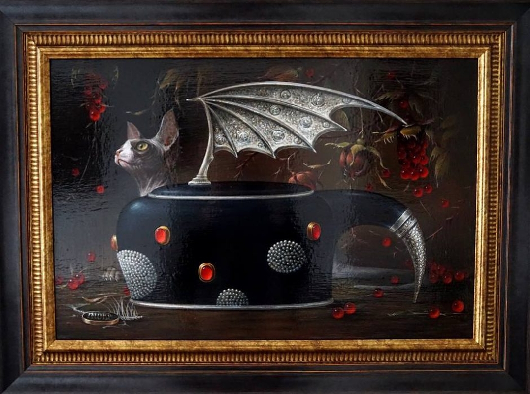 Simboliai, keisti gyviai, katės, šunys, įvairiausi gyvūnai kažkiek primena Lewis Carroll "Alisos stebuklų šalyje" fantazijas ir tampa neaišku, ar rytmečio arbatėlę susiruošė gerti du dailūs šunys, ar jie tik laukia savo šeimininkų. Iš augintinių povyzos atrodo, kad greičiausiai arbatą iš dailių puodelių gers jie ("Rytas terasoje"). O katės valtyje – aiškiausiai vyras ir žmona ("Trise valtyje").