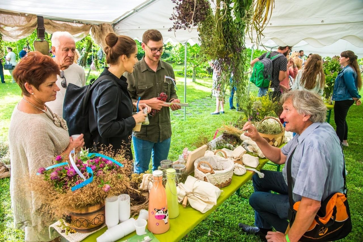 Mugė, grožio kiemelis, amatų kiemelis, skonių kiemelis, kvapų kiemelis, kūrėjų kiemelis su daugybe programų ir edukacijų.