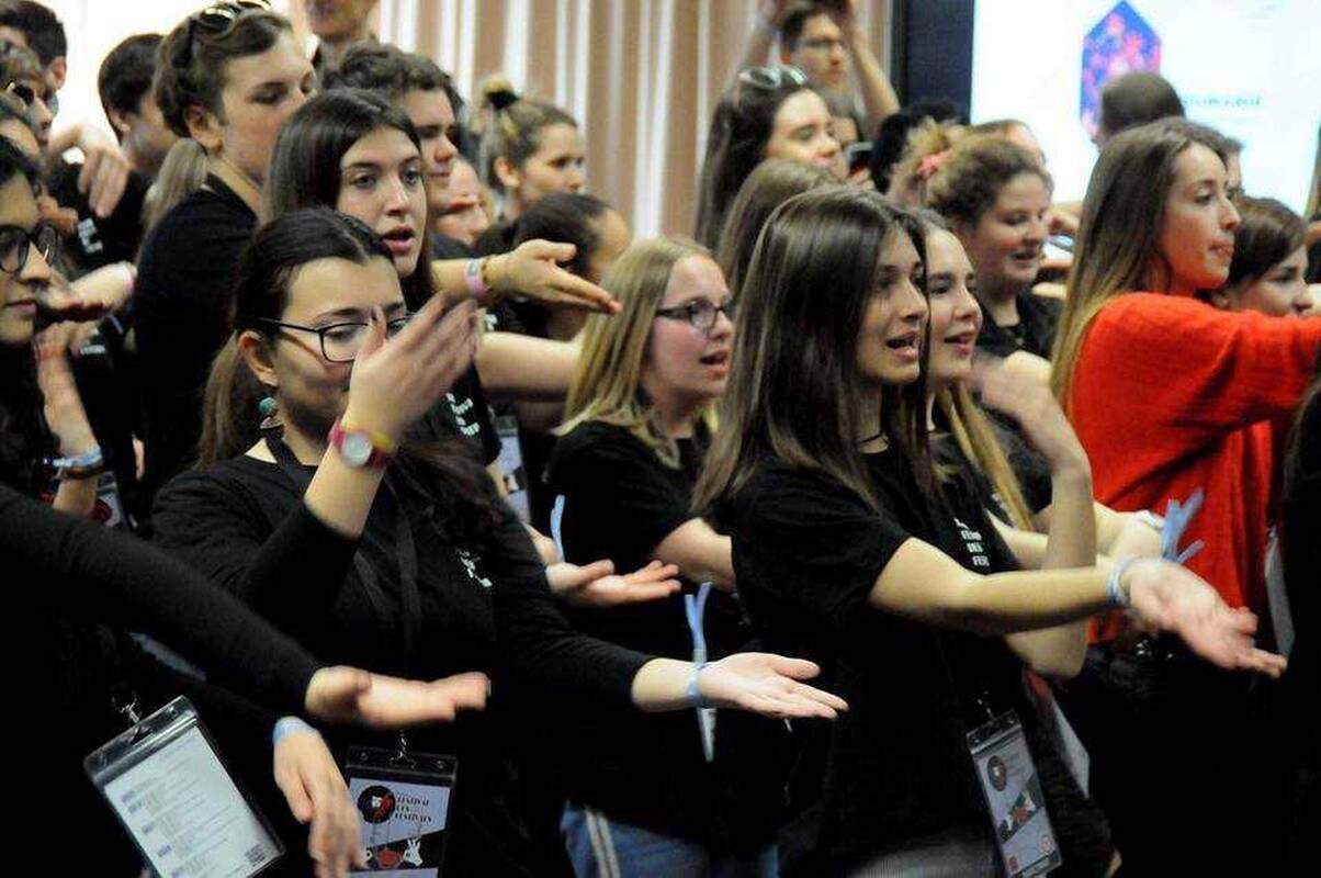 Kad bendrauti prancūzų kalba jiems sekasi puikiai, gimnazistai šmaikščiai pademonstravo festivalio atidarymo šventės metu ir susilaukė aplodismentų iš įvairiomis kalbomis klegančio bendraamžių būrio.