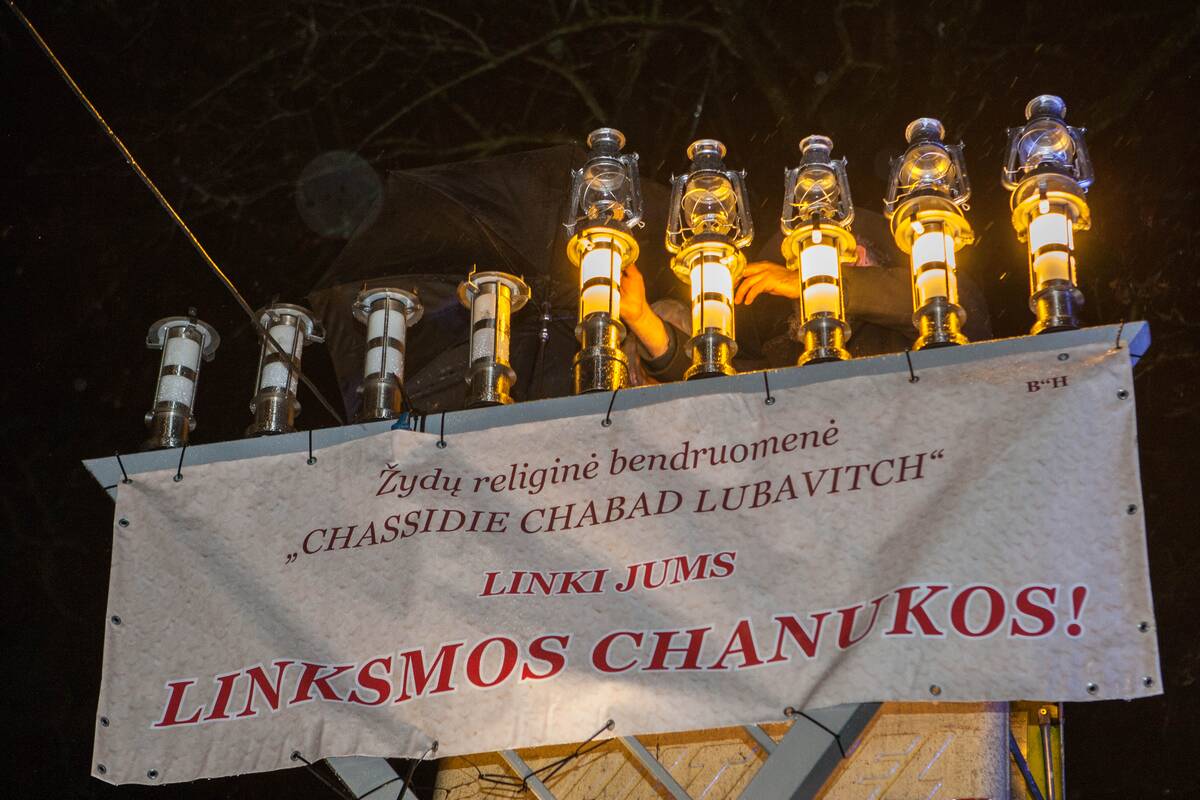 Antradienio vakarą Laisvės alėja toli gražu nepriminė jaukaus kalėdinio atviruko – praeiviai nuo akių braukė lietaus lašus, o ne elegantiškas snaiges. Nepaisant gamtos išdaigų, Muzikinio teatro sodelyje įžiebta Didžioji menora, iškilmingai skelbusi Chanukos pradžią, o susirinkusiuosius kvietusi paskanauti tradicinių žydų užkandžių ir arbatos.