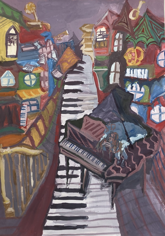 A. Martinaičio dailės mokyklos mokinio darbas parodai „Muzikos miestas“. Organizatorių nuotr.