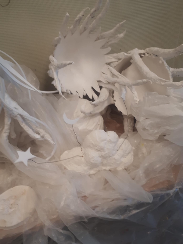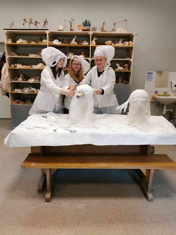 Būsimos spektaklio veikėjų galvos puošenos. Organizatorių nuotr.
