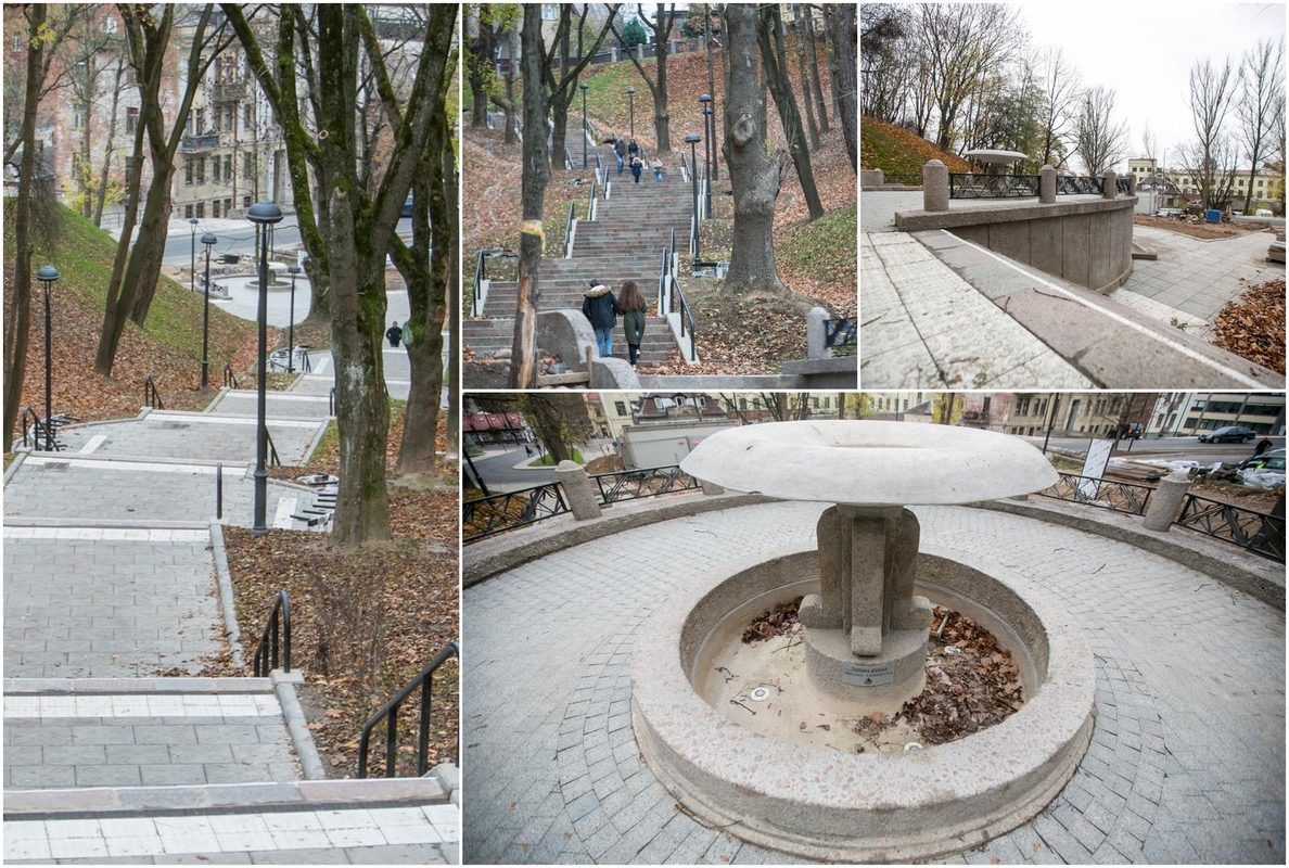 Tikrasis laiptų grožis atsiskleis vasarą, kuomet viršutinėje laiptų dalyje ištrykš grindinyje sumontuoti fontanai.
