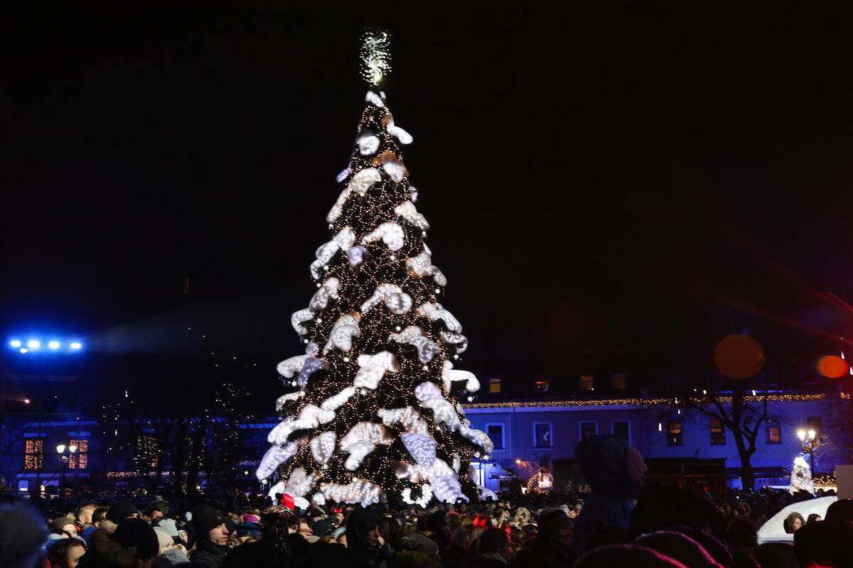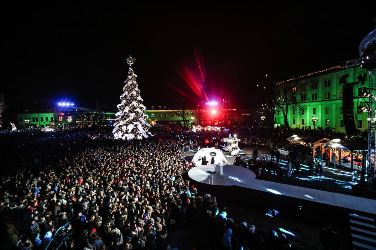 Fejerverkų salvės, meninis Rotušės aikštę juosiančių pastatų apšvietimas, „Biplan“ atliekama „Kalėdų eglutė“ ir centre įsitaisiusi J.Šmidtienės sukurta apsnigtoji eglė, regis, varė susirinkusius iš proto. Minia lingavo, dainavo, šypsojosi ir, panašu, džiaugėsi.