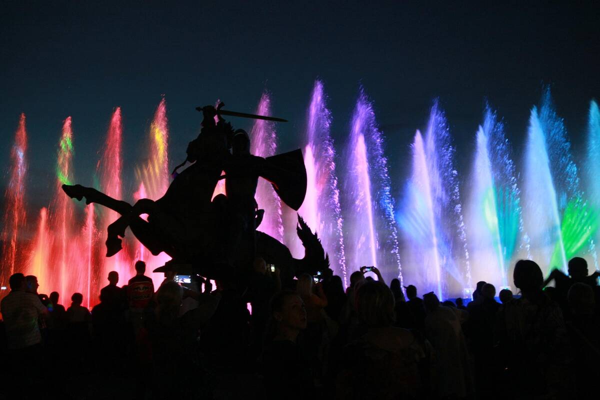 Kitoje pilies pusėje susirinkusiuosius žavėjo muzikinis šokančių fontanų ir lazerių šou. Šviesos apgaubė „Laisvės kario“ skulptūrą ir sukūrė iš tiesų neįprastai įdomų reginį.