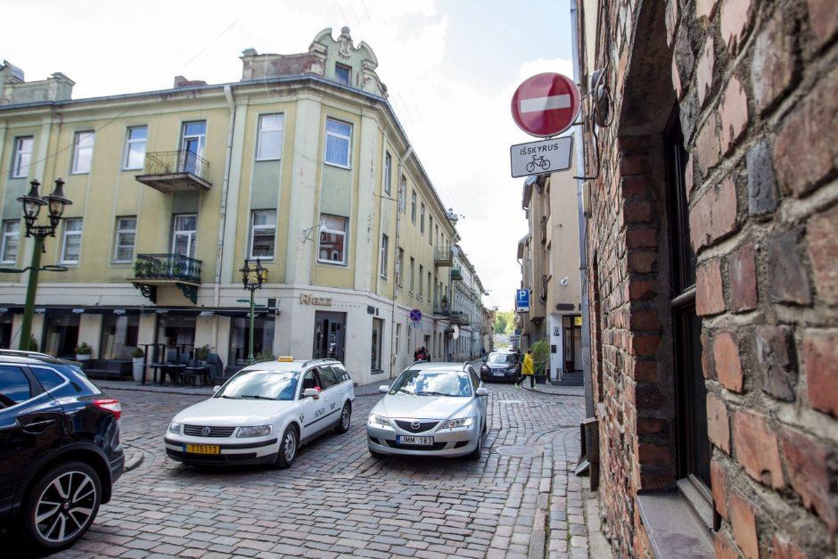 „Tokie kelio ženklai kaip „plyta“, „transporto priemonių eismas draudžiamas“, „gyvenamoji zona“, „sustoti draudžiama“, „stovėti draudžiama“ ir kiti, regis, negalioja. Puiku, kad Senamiestyje atsirado naujų gyvenamųjų namų ir verslo pastatų, bet sulig tuo pagausėjo ir eismo srautai. Suvaldyti juos pamiršta? Negana to, nors aplink pilna aikštelių, vairuotojai spraudžia savo automobilius į gatveles“, – esama padėtimi piktinasi kauniečiai.