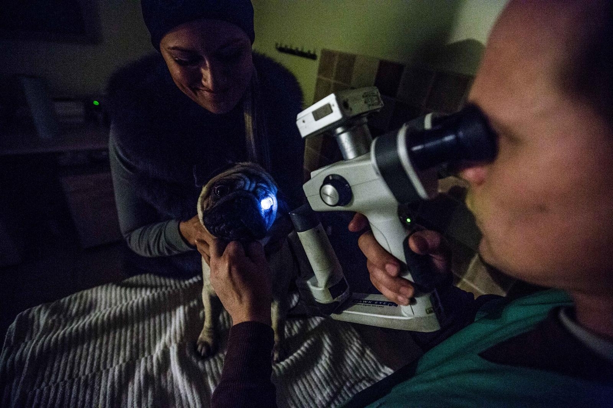 Kauno pakraštyje, Ringauduose, dirbančio veterinarijos gydytojo oftalmologo Evaldo Diržinausko klinika niekada nestokoja keturkojų pacientų. Pastaraisiais metais čia itin pagausėjo mažų šunų veislių atstovų, atvežtų dėl įvairiausių akių ligų ir dėl to trinkančio ar net prarandamo regėjimo.