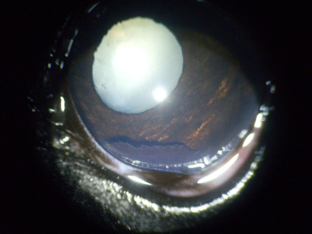 Beveik visi į kliniką atvežti pacientai negalėjo pasigirti, kad jų akių ligos buvo pastebėtos pačiu laiku. Štai ištyrus iš provincijos atvežto šunelio balzganos spalvos akį, paaiškėjo, kad pirminė to priežastis ne katarakta, o rainelės vėžys. Tai jis sudrumstė lęšiuką ir grasino visiškai sunaikinti ne tik regėjimą, bet ir patį gyvūną. Todėl šiam pacientui buvo paskirta skubi operacija, kurios tikslas – pašalinti rainelės auglį kartu su akimi, kad šuniukas liktų ateityje gyvas ir sveikas. Nors ir su viena akimi.