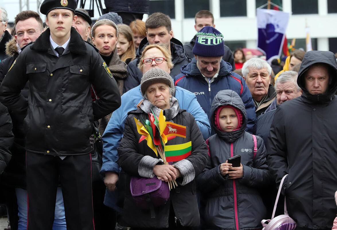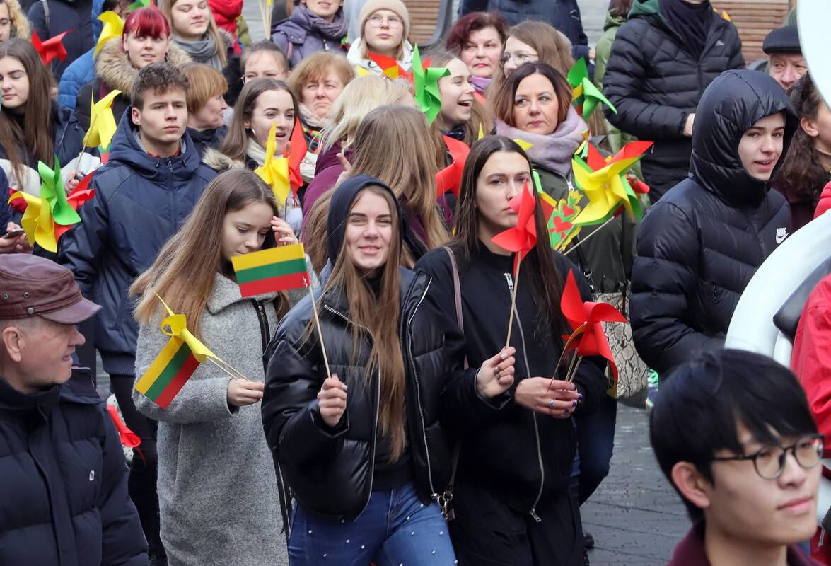 „Tą vėlų kovo 11-osios vakarą, kai buvo atkurta Lietuvos nepriklausomybė, aš dar nebuvau gimęs, tačiau dalyvauju šioje eisenoje, kad tai, ką tada išsikovojo mūsų tėvai, būtų išsaugota ir mūsų vaikams“, – teigė 17-metis Justas, sutiktas moksleivių ir visuomeninių organizacijų eisenoje nuo Arkikatedros bazilikos, kurioje vyko Šv. Mišios, papuoštos Lietuvos nacionalinės kultūros ir meno premijos laureatės Zitos Bružaitės liturginiu kūriniu „Vilties mišios“, į pagrindinį jubiliejinės šventės renginį Karo muziejaus sodelyje su tradiciniais jo atributais: Vyčio kryžiaus ordino vėliavos pakėlimo ir iškilmingos šaulių priesaikos ceremonijomis bei gėlių padėjimu prie šią šventą Lietuvos patriotams vietą ženklinančių istorinių relikvijų.