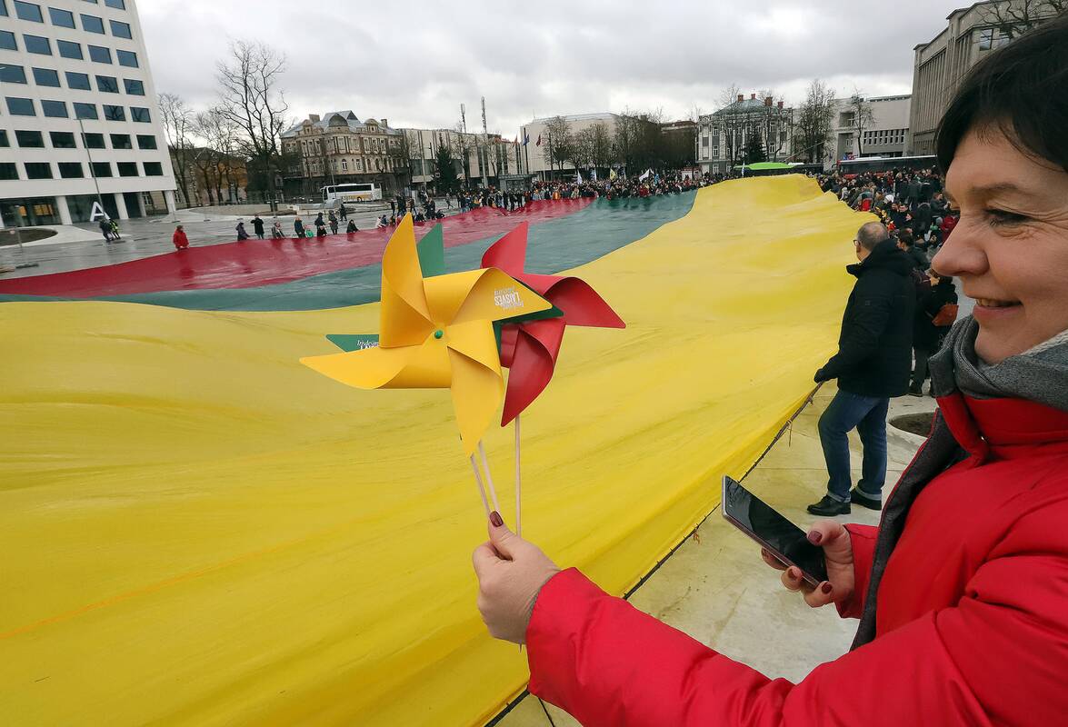 Tačiau, šį puikų sumanymą pakoregavo šiandien Kaune siautėjęs gūsingas vėjas. Dėl ko nuspręsta nerizikuoti ir šia ypatingą istoriją turinčia daugiau kaip 45 metrų ilgio, 27 metrų pločio ir daugiau nei 100 kg sveriančia trispalve, kurią nuo BLC verslo centro stogo turėjo nuleisti apie keliasdešimt koncerno SBA įmonėse dirbančių savanorių su savo šeimų nariais, uždengti Vienybės aikštę.