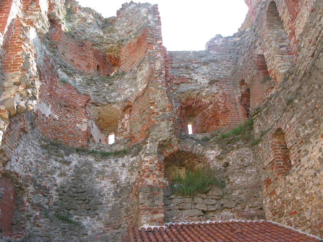 Tiksliai galima pasakyti, kokio aukščio buvo sienos tarp bokštų. Geriausiai išlikusi sienos dalis ties bokštu, virš dabartinės nerestauruotos sienos. Autentiškame kampe yra grotuotas langas, kur seniau buvo išeiga iš bokšto ant pilies sienos. Šioje vietoje matomas ir pačios sienos storis.