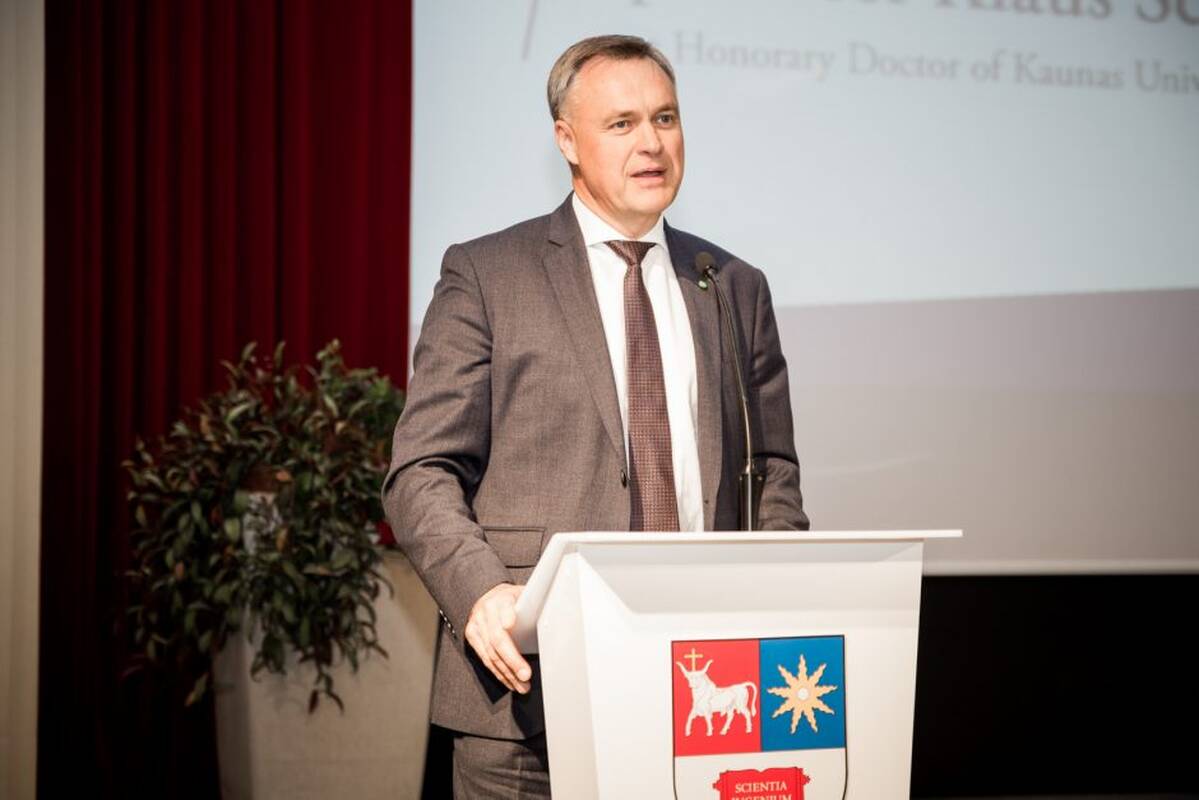 45-uoju Kauno technologijos universiteto (KTU) garbės daktaru tapo Pasaulio ekonomikos forumo, tarptautinės organizacijos, inicijuojančios viešojo ir privataus sektorių bendradarbiavimą, steigėjas ir valdybos pirmininkas profesorius Klausas Schwabas. Garbės daktaro regalijos iškiliam asmeniui buvo įteiktos spalio 13 d.