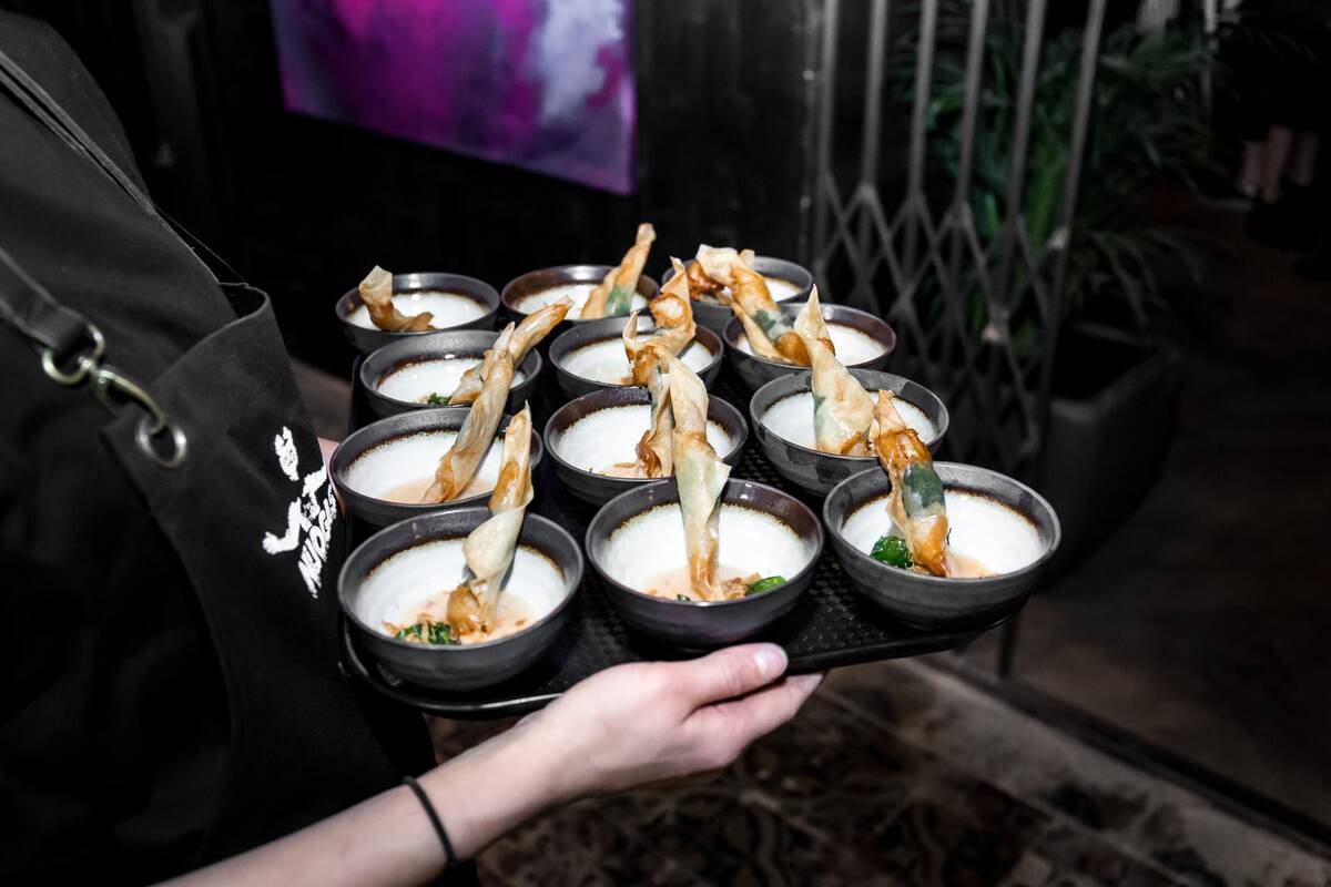 Pabandyta įspėti ir kulinarinius miestiečių poreikius. "Nuogas" laviruoja tarp aukštosios kultūros baro ir azijietiško maisto restorano. "Įgijome teisę naudotis Vilniuje veikiančio vietnamietiško maisto restorano "Briusly" valgiaraščiu. Tai sostinės lankytojų patikrinti ir pamėgti patiekalai, kurių nuo šiol galima gauti ir Kaune", – sako nemenką patirtį restoranų versle turintis J.Leščiukaitis.