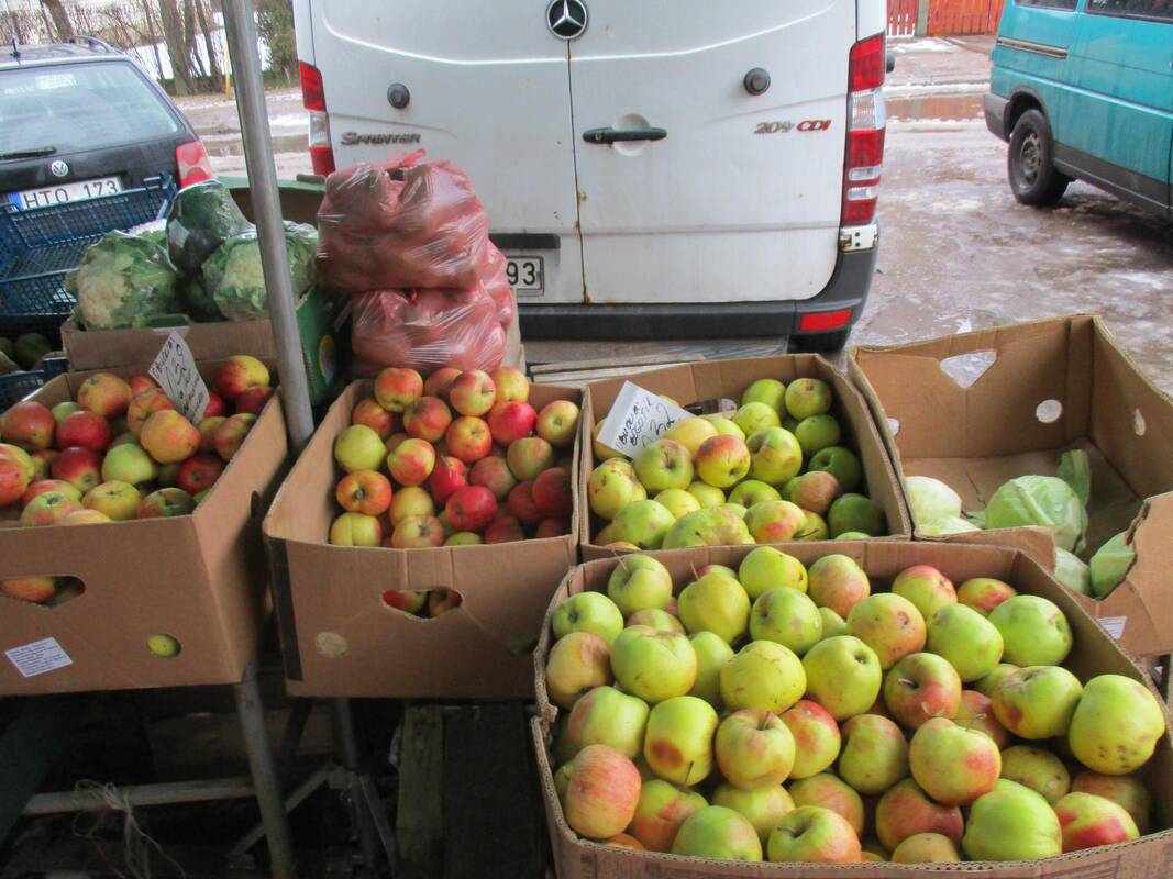 Sekmadienį bulvių kilogramą pas ją buvo galima nusipirkti už 0,18 euro, tiek pat kainavo ir kilogramas burokų bei svogūnų. Skirtingų veislių obuoliai buvo pardavinėjami po 0,32 euro, pomidorai – nuo 1,10 euro. Brangiausiai kainavo mažiukai, labai skanūs pomidoriukai – 2 eurai už kilogramą.