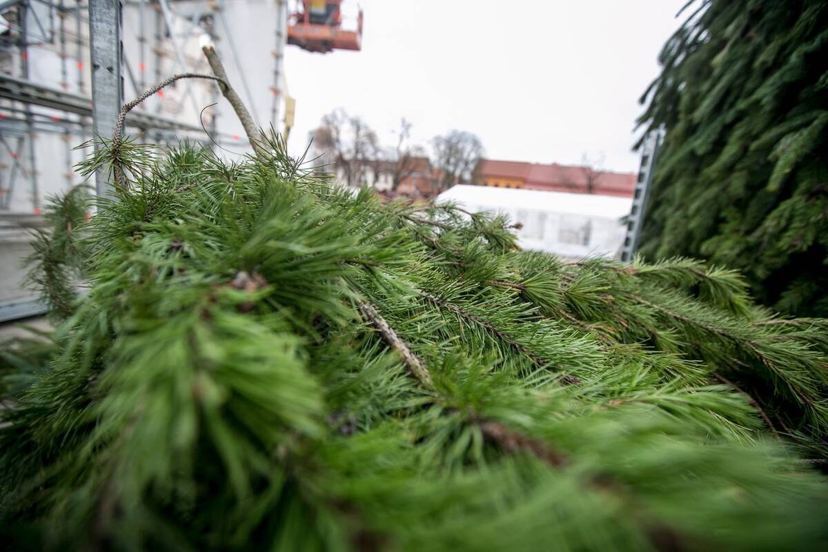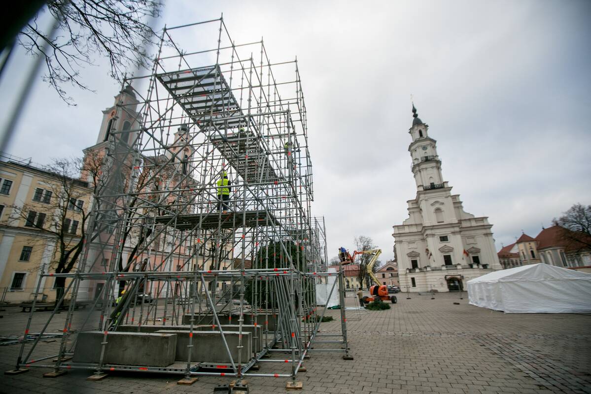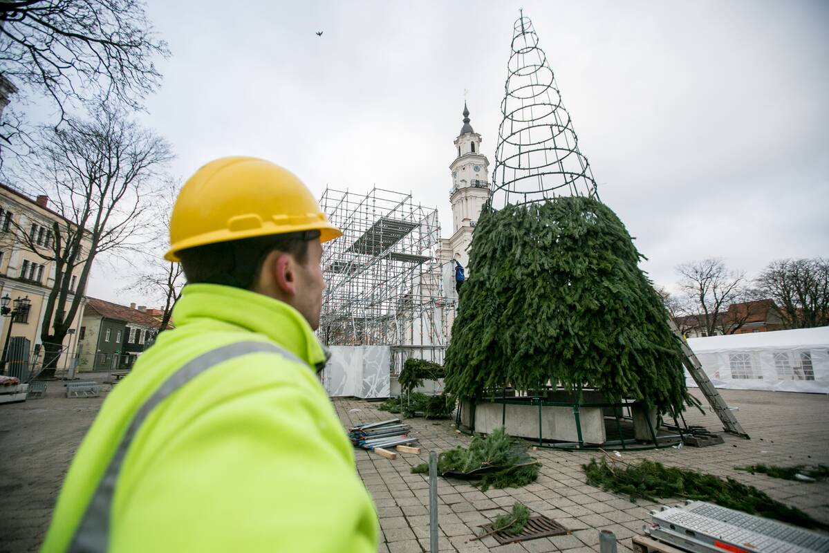 Šiuo metu Rotušės aikštėje jau išrikiuota apie 30 medinių namelių, kuriuose įsikurs prekybininkai. Taip pat pradėta formuoti pati eglutė. Ant kūgio formos karkaso jau pritvirtintos apatinės šakos. Visai šalia darbininkai pastatę didelius pastolius, kuriuos dengia specialiomis medžiagomis – šios dekoracijos šventiniu laikotarpiu primins ledo luitus ir bus įvairiai apšviestos.