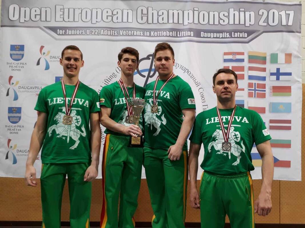 Daugkartiniai pasaulio ir Europos čempionai Julius ir Justas Optai, Tomas Miežlaiškis ir dar šeši žymūs sportininkais Lietuvos vėliavos spalvomis sužymėtus svarsčius kels vienu metu.