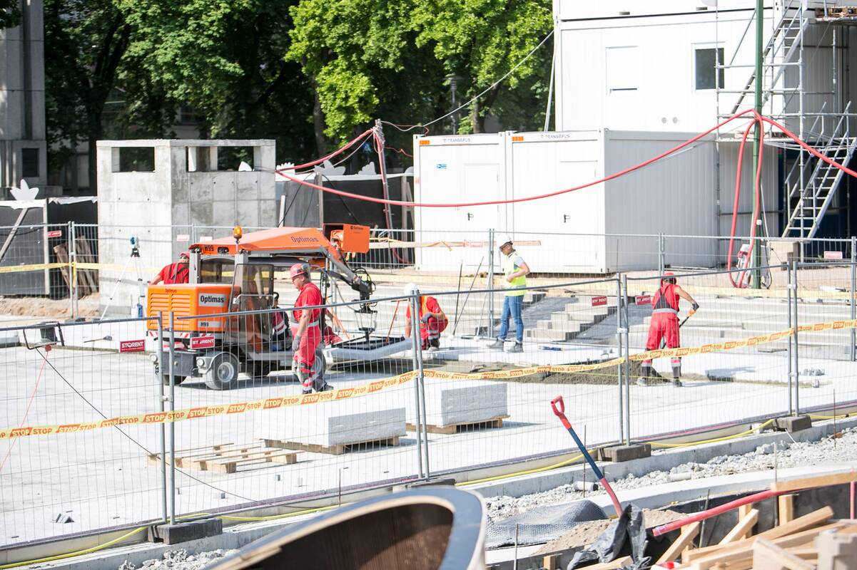 Specialios technologijos betoną reikia lieti saugant nuo saulės spindulių bei lietaus, o formas gludinti rankomis, todėl šiuo metu darbininkai darbus atlieka pasislėpę po laikinais stogeliais. Vienybės aikštėje latviai jau atliko daugiau nei trečdalį suplanuotų betonavimo darbų.