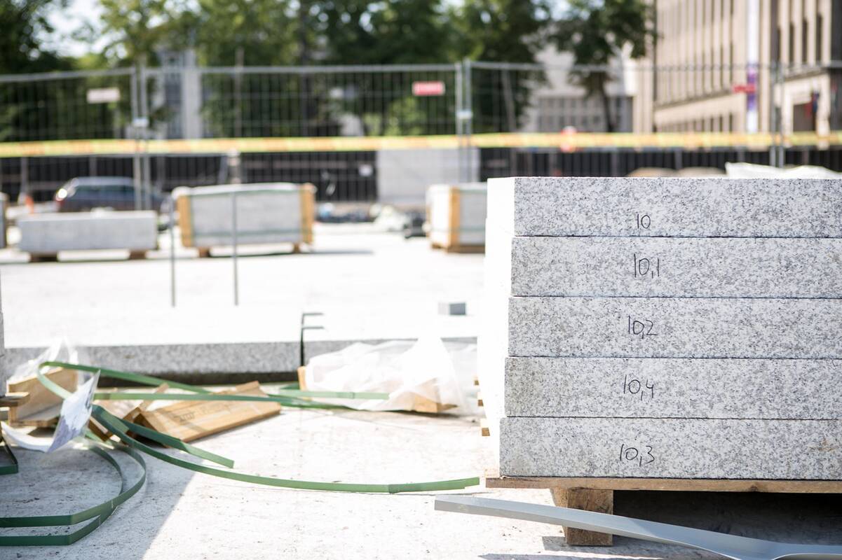 Vienybės aikštėje klojamos ypač didelės granito plokštės. Viena plokštė sveria apie pusę tonos, todėl reikėjo ne tik specialios kėlimo technikos, bet ir apmokyti darbuotojus.