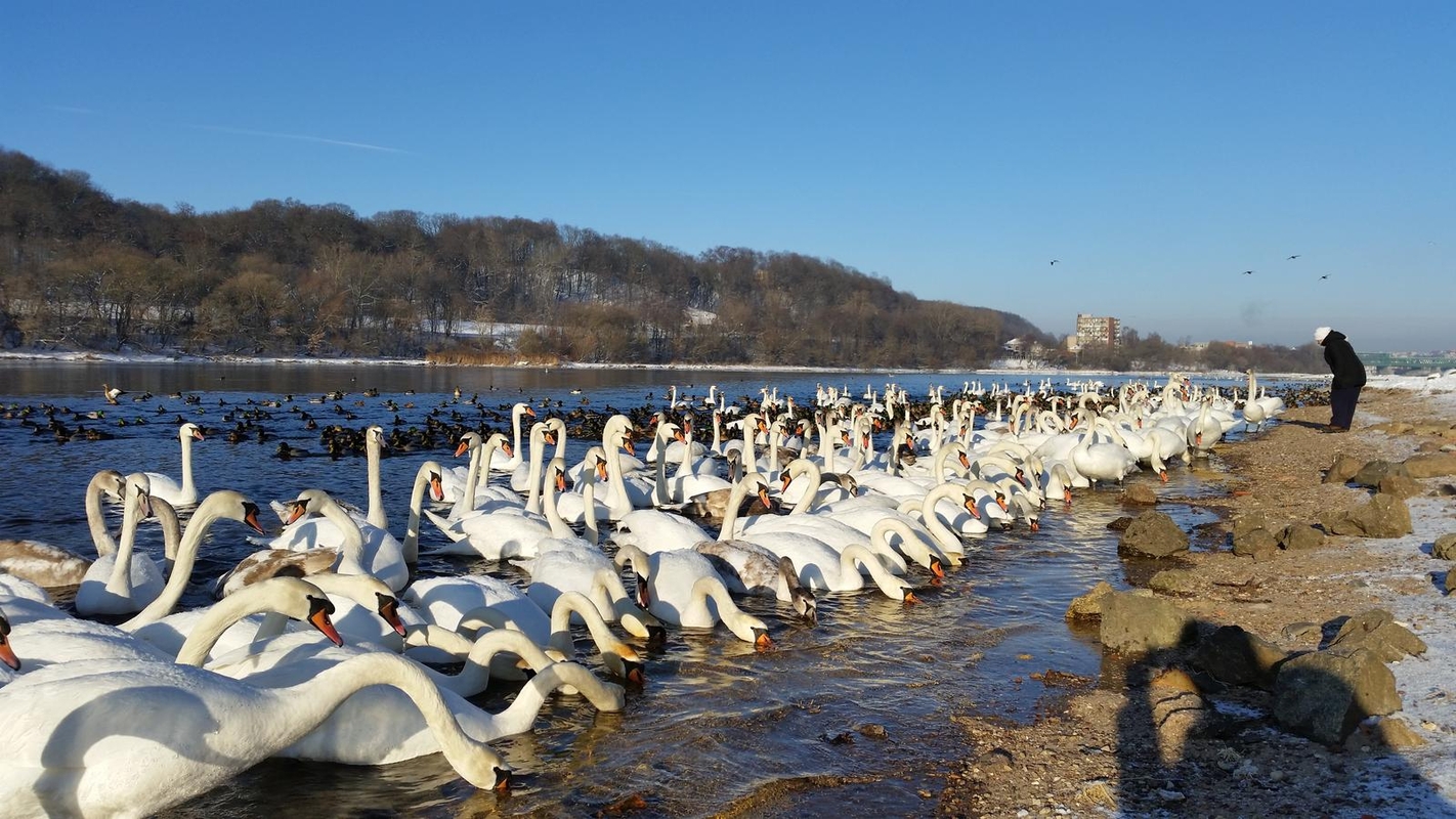 Lietuvos ornitologų draugija jau septintus metus koordinuoja žiemojančių vandens paukščių lesinimą Kauno mieste. Ties Kaunu ir pačiame mieste laikosi apie 600 gulbių, 4000 ančių, kurioms jau sulesinta daugiau nei 6 t grūdų.