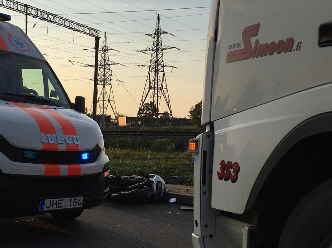 Policija pranešimą apie eismo įvykį Petrašiūnuose gavo 20.37 val. R. Kalantos g. 169D susidūrė motociklas ir vilkikas.