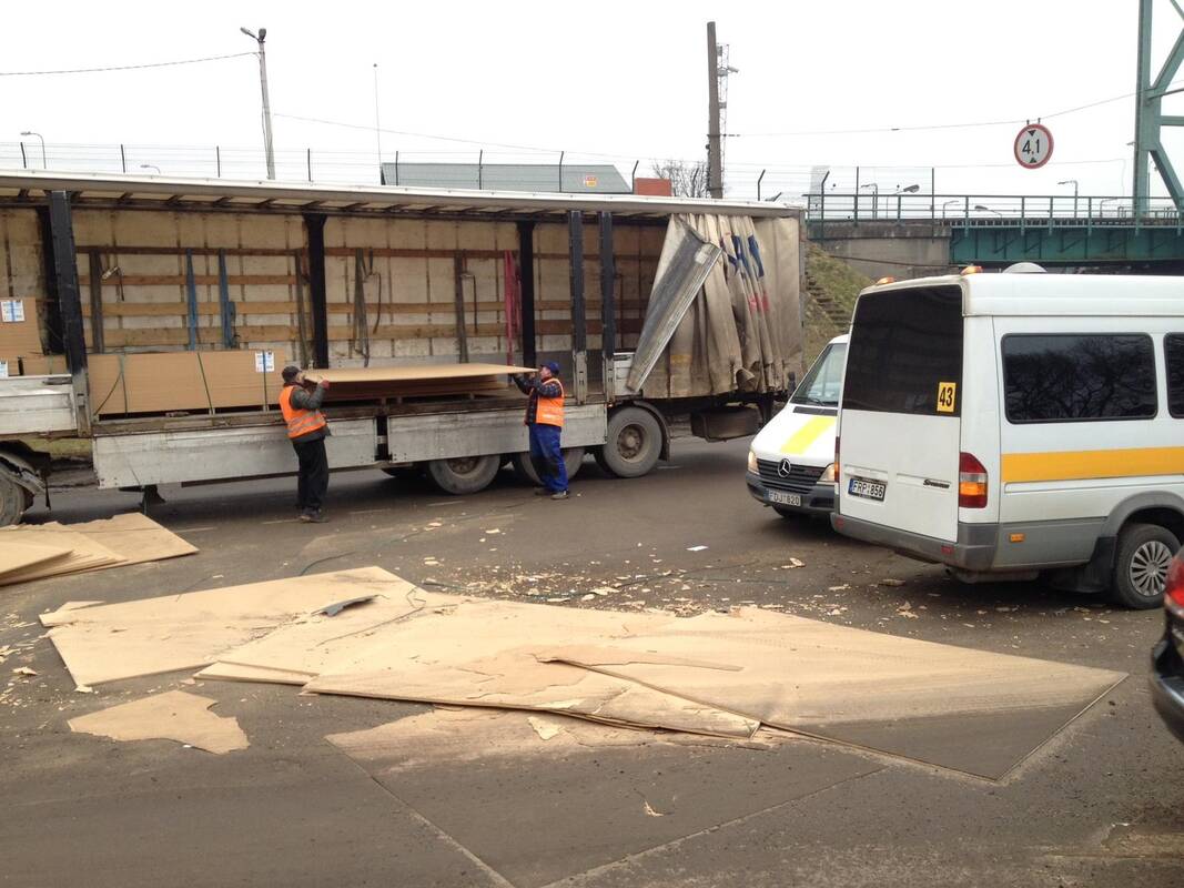 Trečiadienį Kaune eismo įvykis vos nesibaigė tragedija. Piliakalnio g. iš važiuojančio vilkiko pabiro plokštės, kurios kliudė maršrutinį mikroautobusą.
