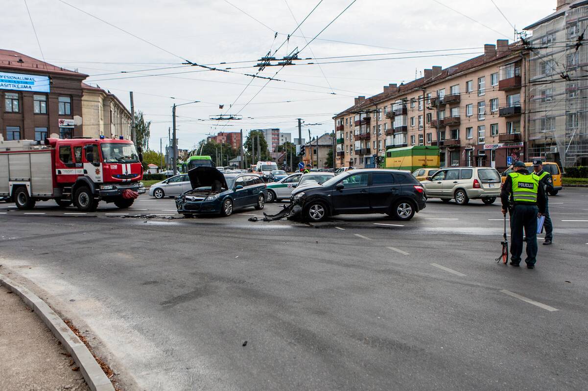 Pareigūnų duomenimis, judrioje Savanorių pr. ir Taikos pr., vadinamojoje Aklųjų, sankryžoje į eismo nelaimę pakliuvo keturios transporto priemonės: du "Voksvagen", vienas "Nissan"ir "Opel" markių automobiliai.