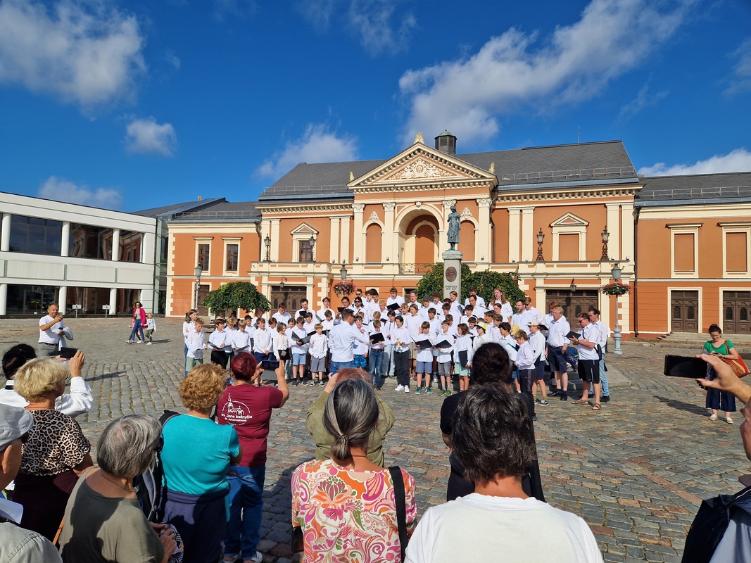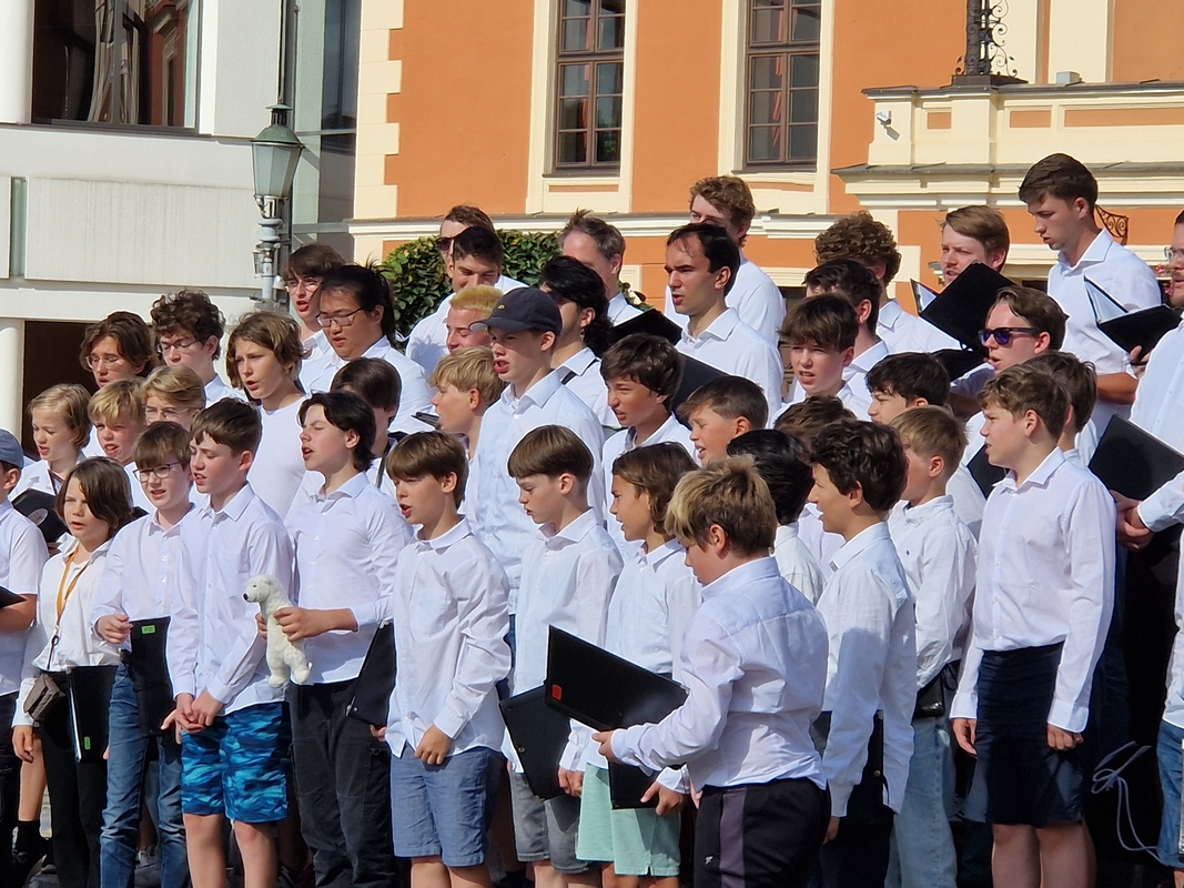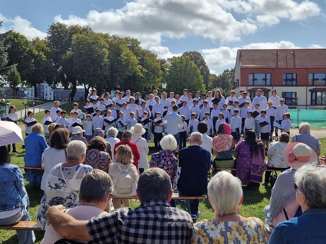 Tie, kas domėjosi pirmą kartą rengiamo Klaipėdos Šv. Jono bažnyčios jaunimo muzikos festivalio koncertų programa, nepatingėjo šeštadienį ryte atvažiuoti į Teatro aikštę. Žmonės žinojo kad 10.30 val. čia atvyks berniukų ir vyrų choras iš Berlyno.