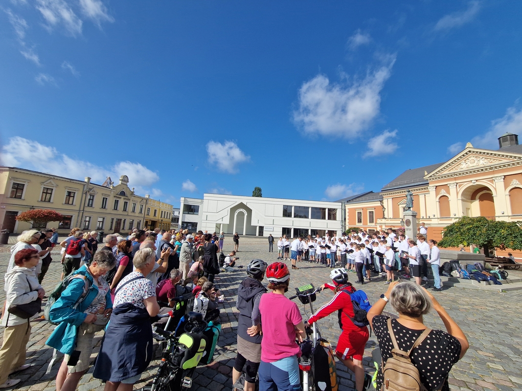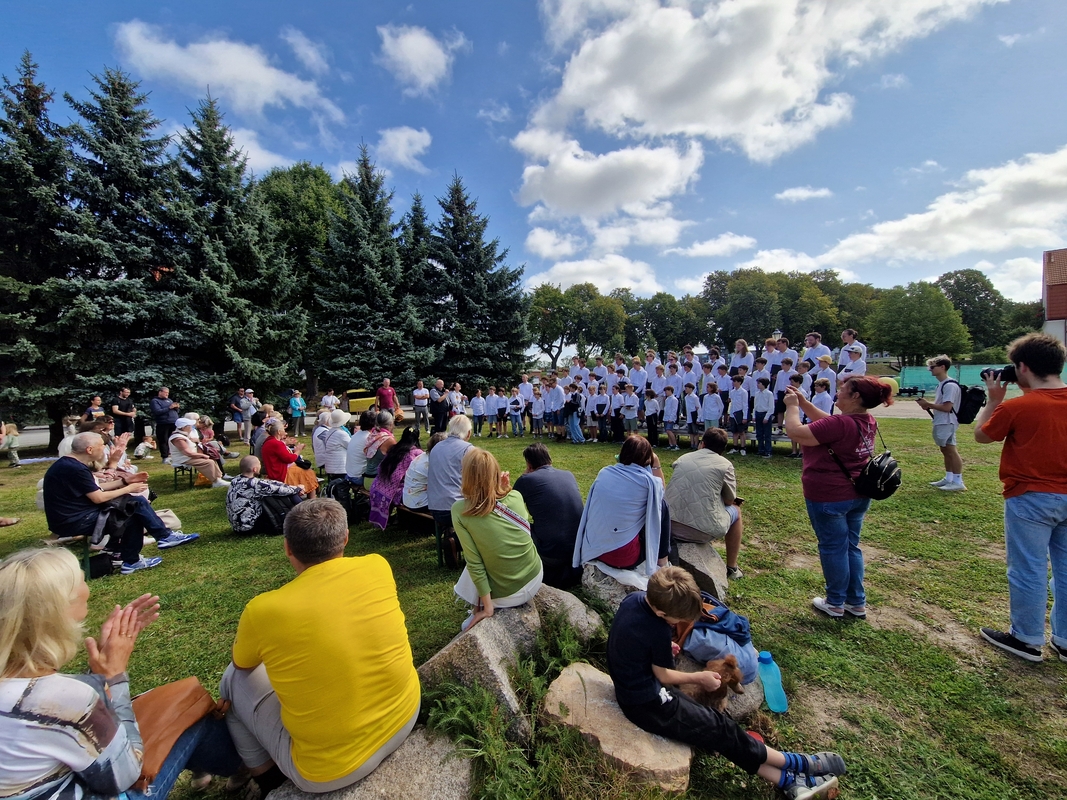 Sustoję prie paminklo iškiliam vokiečių poetui Simonui Dachui berniukai ir jaunuoliai traukė giesmes, kurių garsas maloniai sklido po bundančią aikštę.