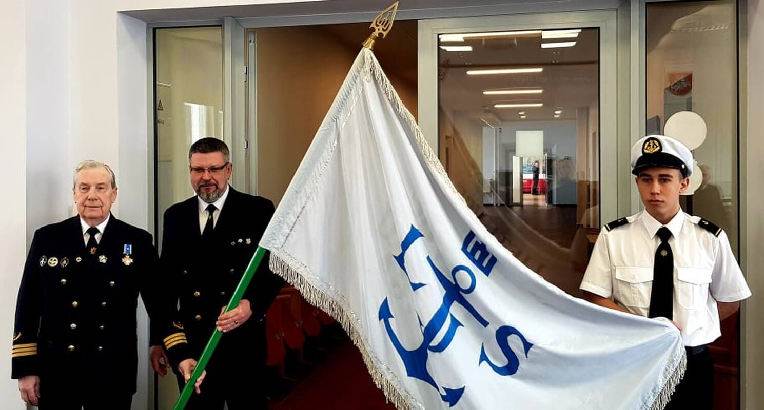 Tęstinumas: vienoje fotografijoje – trys jūrininkų kartos: buvęs LJS pirmininkas Petras Bekėža (kairėje), dabartinis sąjungos vadovas A.Kaupas ir Lietuvos aukštosios jūreivystės mokyklos moksleivis. LJS nuotr.