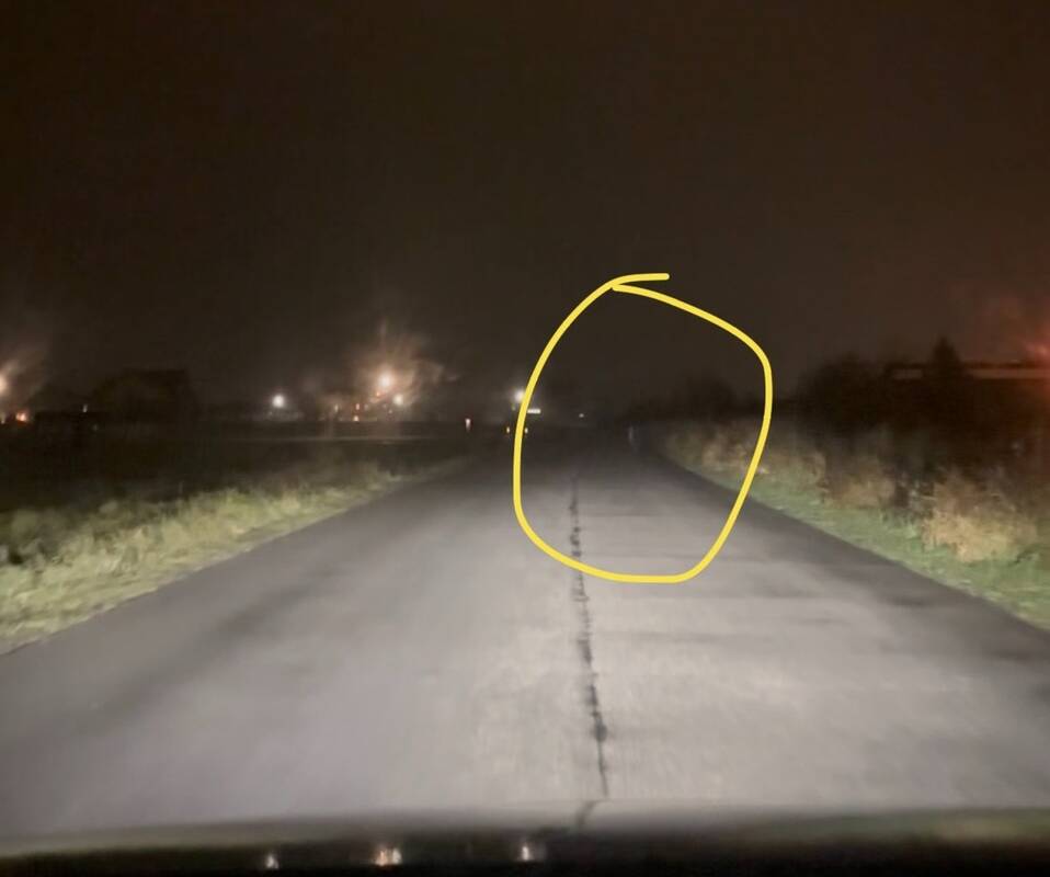 Dar viena moteris pasidalijo įrašu socialiniuose tinkluose, Slengių bendruomenės grupėje. Ji įkėlė nuotrauką, kurioje matyti tik automobilio žibintais apšviesta gatvė.