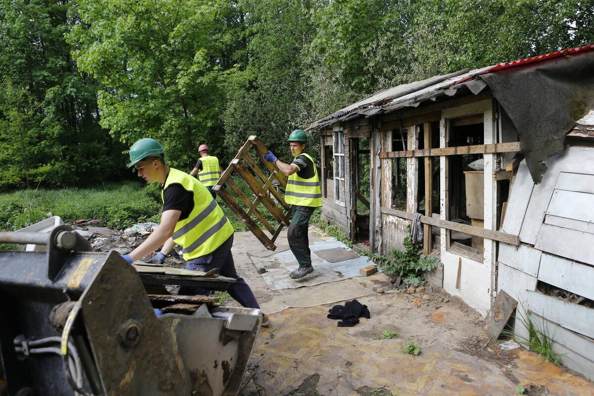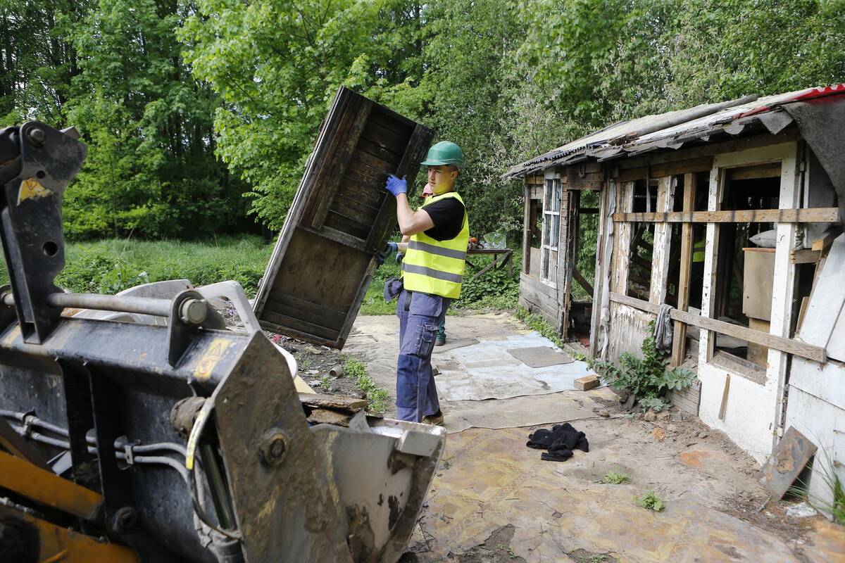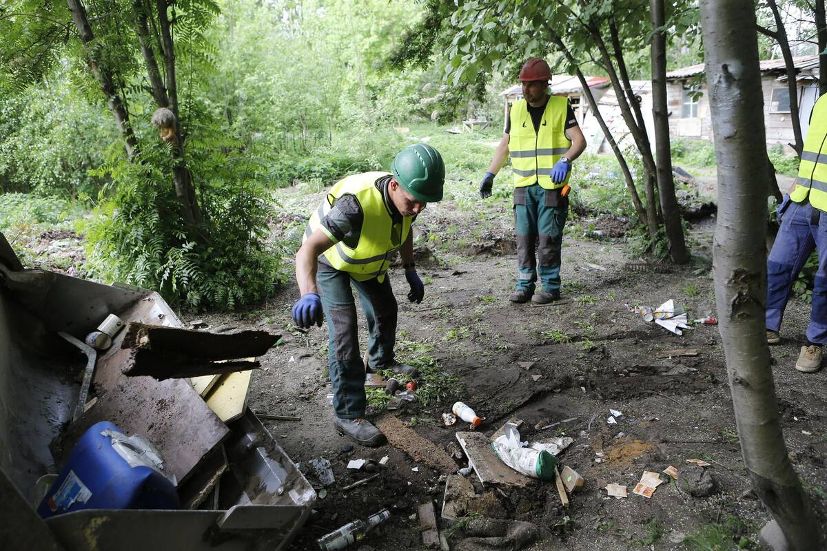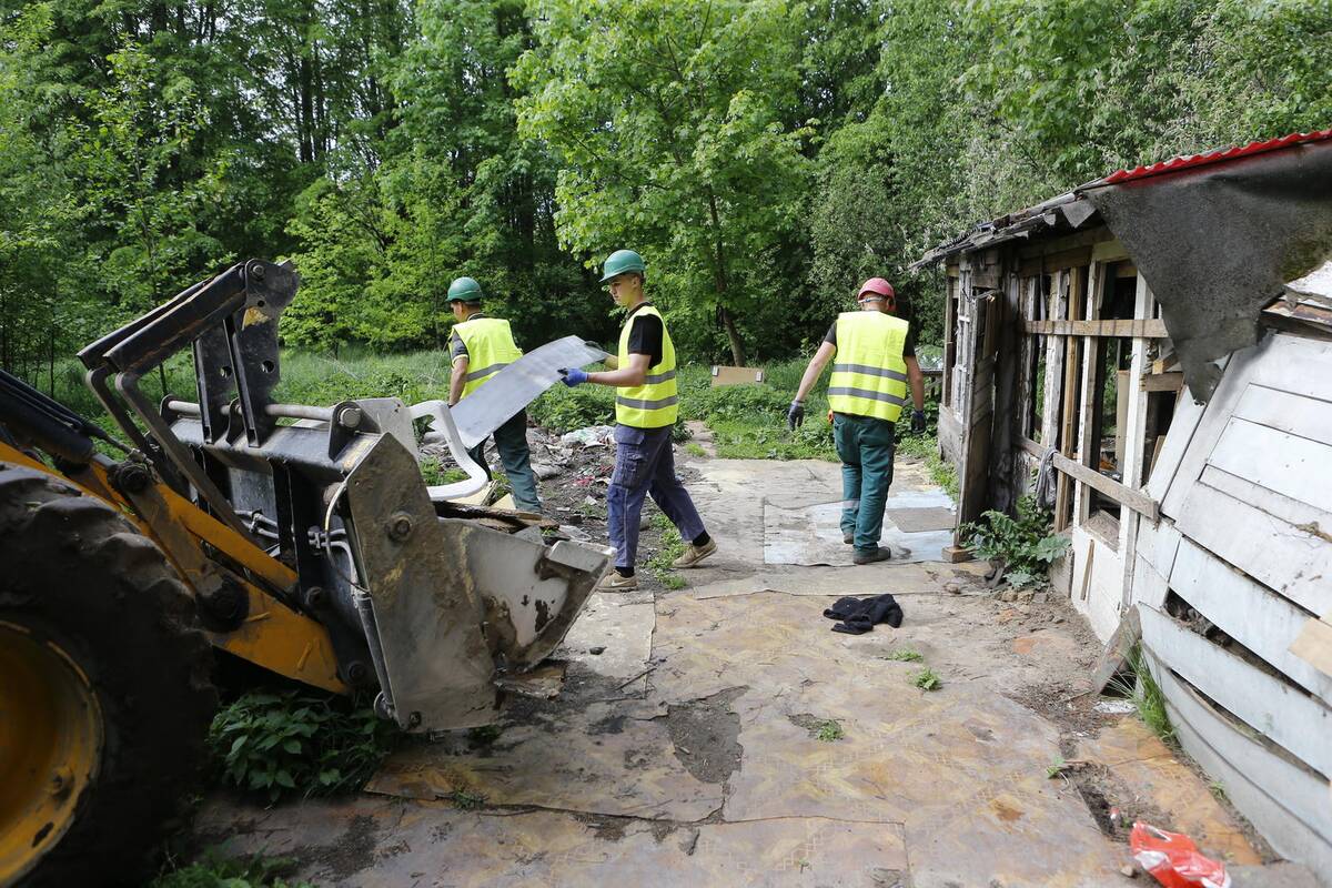 Prieš šalčius savivaldybė nusprendė jų namelių neardyti. Bet, kaip ir žadėjo, sušilus orui, tą šiukšlyną ėmė valyti. Darbai prasidėjo vakar.
