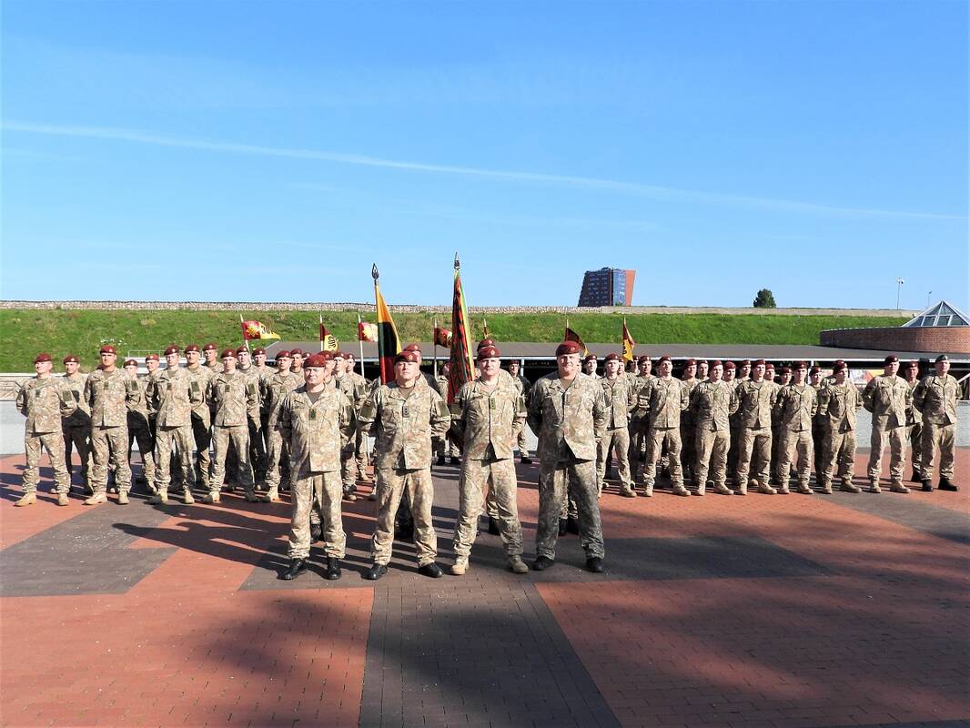 KASP vadas plk. L. Kubilius išvykstančios pamainos būrio vadui kpt. Kęstučiui Denbinskui įteikė Lietuvos Respublikos vėliavą, visiems kariams palinkėjo ištvermės tarnyboje toli nuo artimųjų, sėkmės vykdant užduotį ir saugiai sugrįžti į namus.