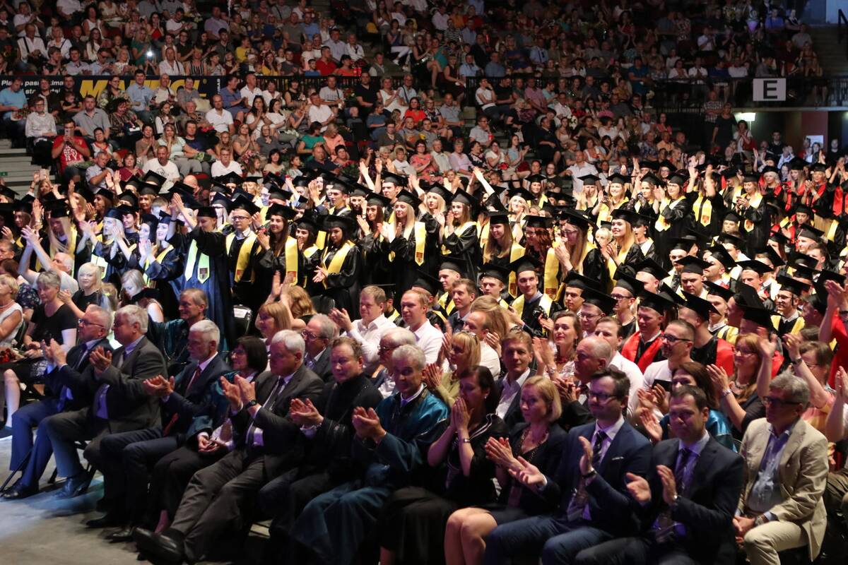 „Pirmi metai, kai visa universiteto bendruomenė susirenka į vieną šventę, anksčiau jų būdavo net penkios, šešios. Labai džiaugiamės ir tais absolventais, kurie šiemet baigė studijas su pagyrimu. Akademiniai pasiekimai – labai svarbūs jų tolesnei karjerai“, – tikino rektorius.