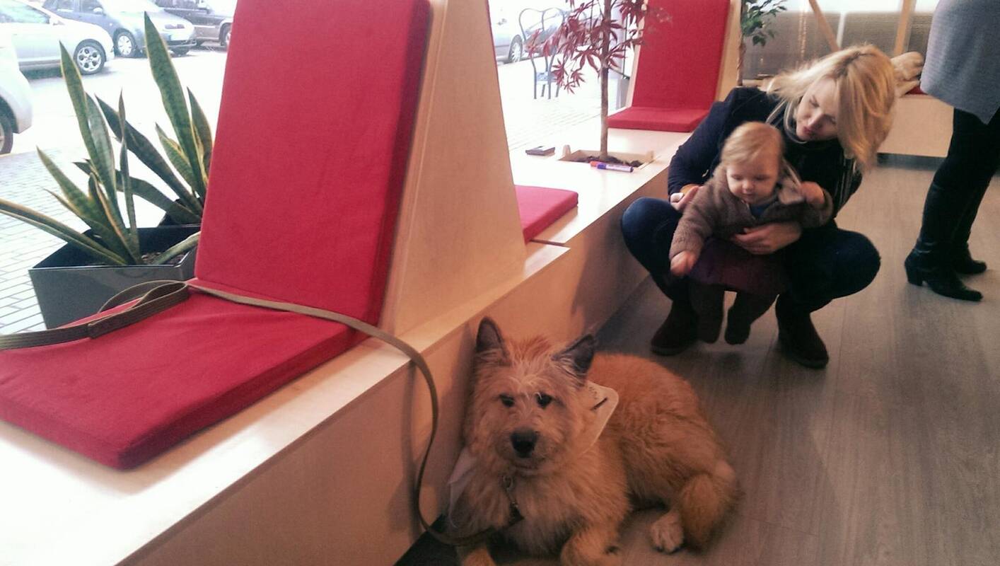 Viešnia iš gyvūnų prieglaudos nestokojo šventės dalyvių simpatijų ir santūriai stebėjo šurmulį prie pyragais nukrauto stalo. Landža – viena iš kone 50 keturkojų, kuriais šiuo metu rūpinasi nuoširdūs „Linksmųjų pėdučių“ savanoriai.