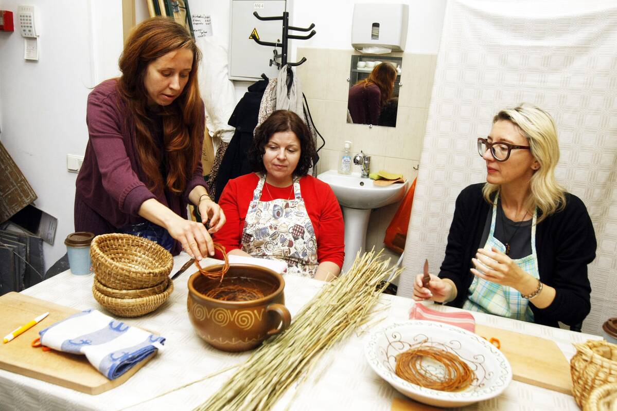 Klaipėdietės noriai įsitraukė į senovinių šiaudinių indų gamybą, taip tarsi prisiliesdamos prie labai gilios senovės.