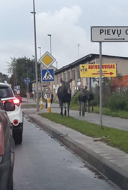 Daugybė klaipėdiečių prieš 8 val. ryto skubėjo skambinti pagalbos telefonu 112, norėdami pranešti, kad važiuojamąja gatvės dalimi ties įmonės "Gilė" klientų aptarnavimo centru geležinkelio link eina briedė su jaunikliais.